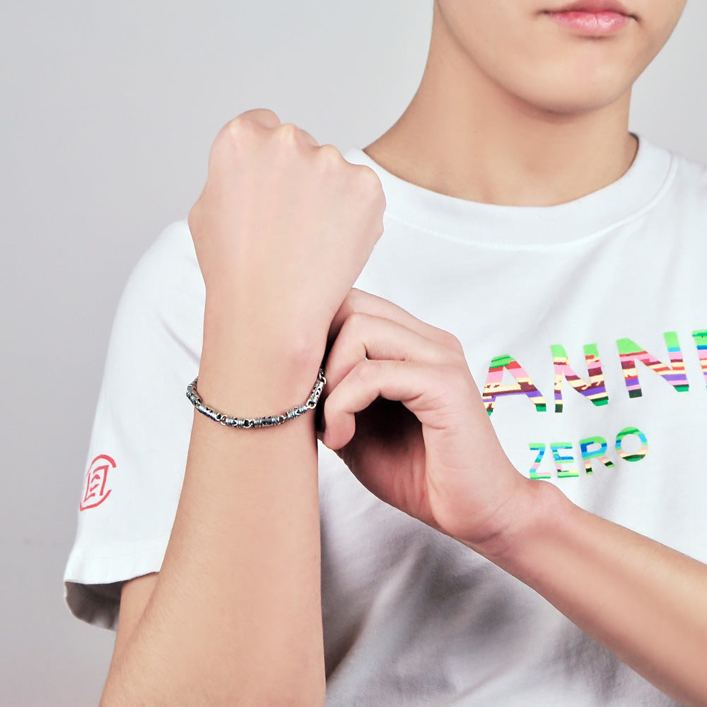 925 Sterling Silver Bracelet Tangcao Pattern Cuban Men Thick Type