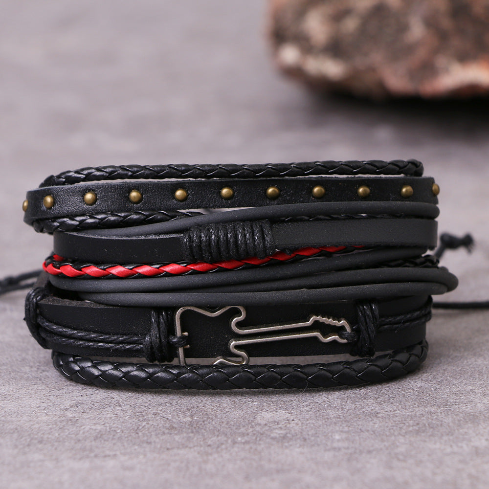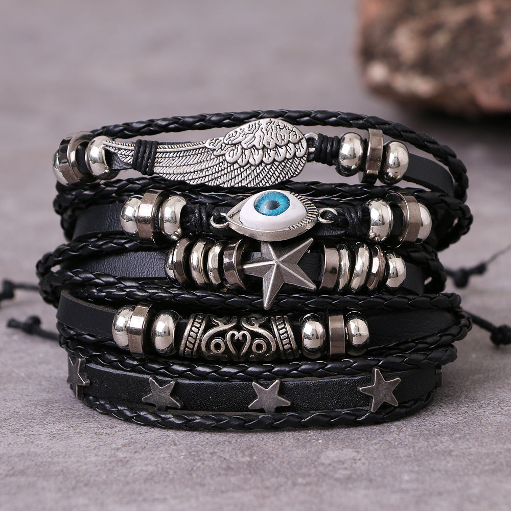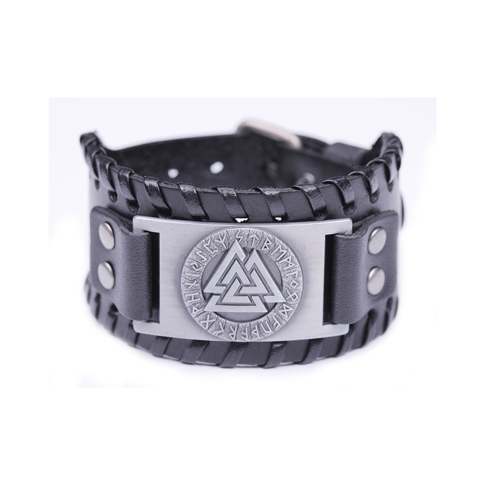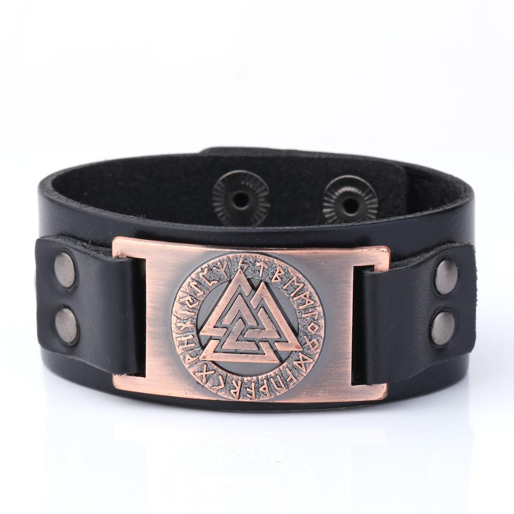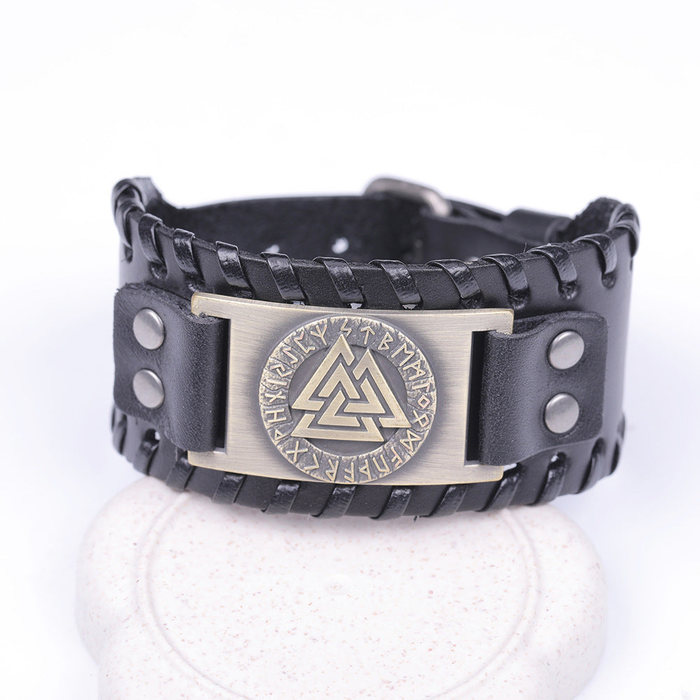 Nordic Vintage Viking Totem Leather Bracelet Odin Luenwen Men's Bracelet