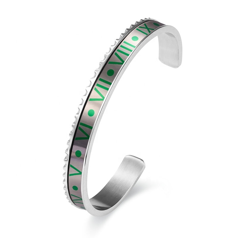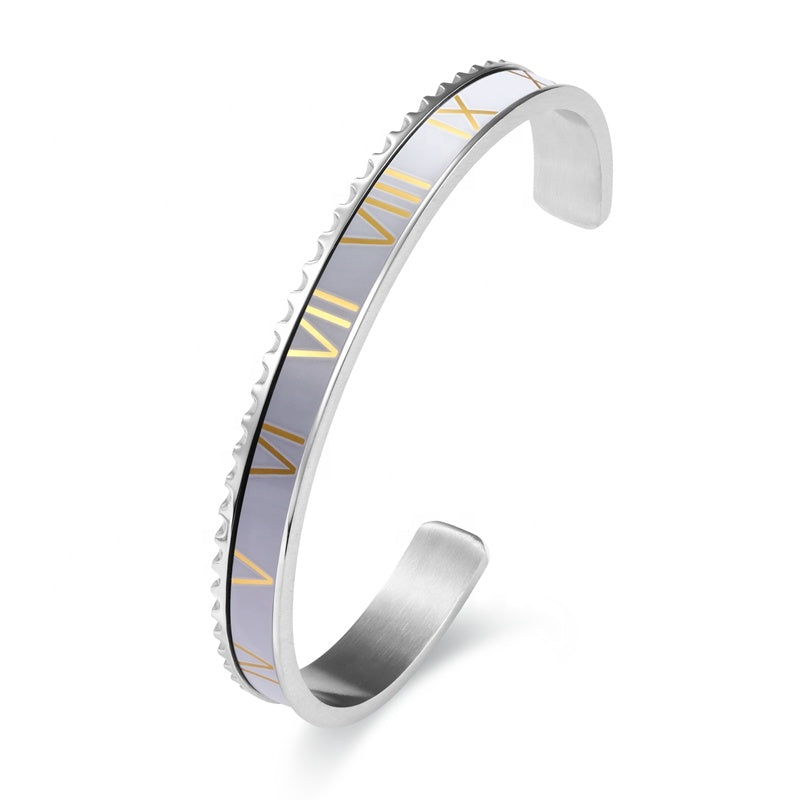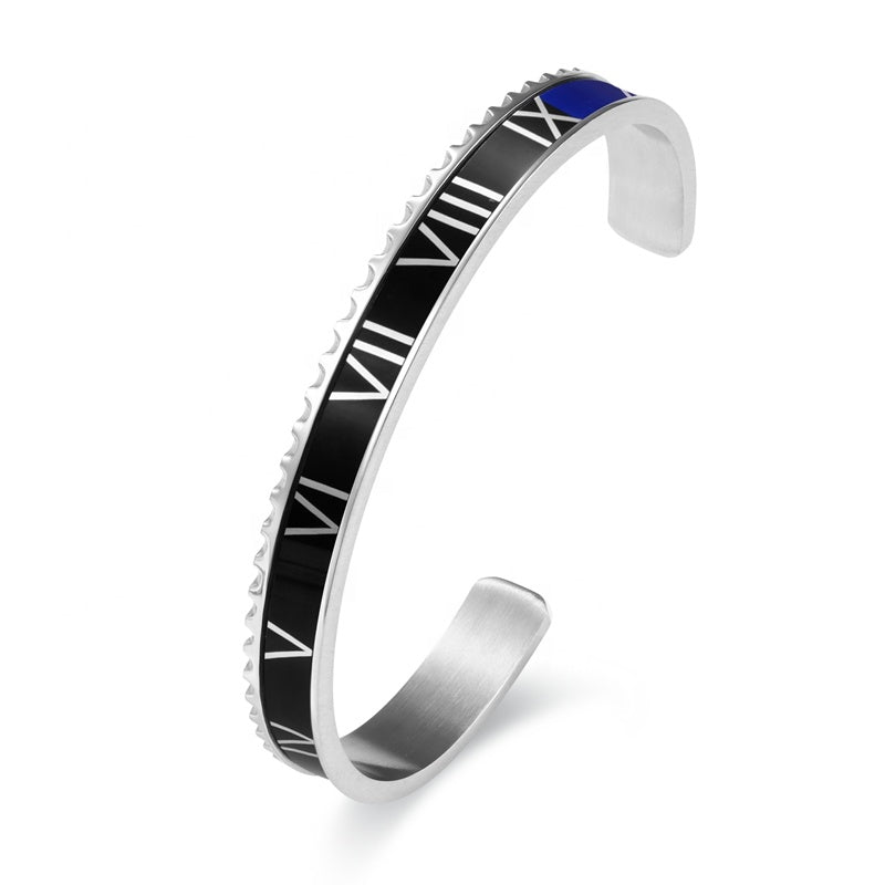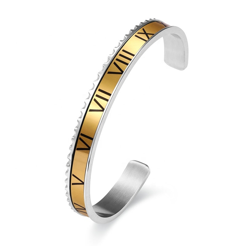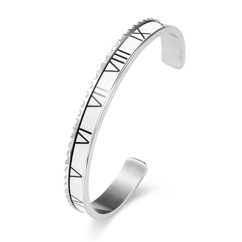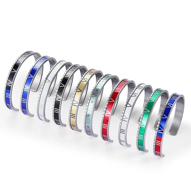 Hot Roman Numeral Cuff Bracelet Stainless Steel Four-Color Bracelet