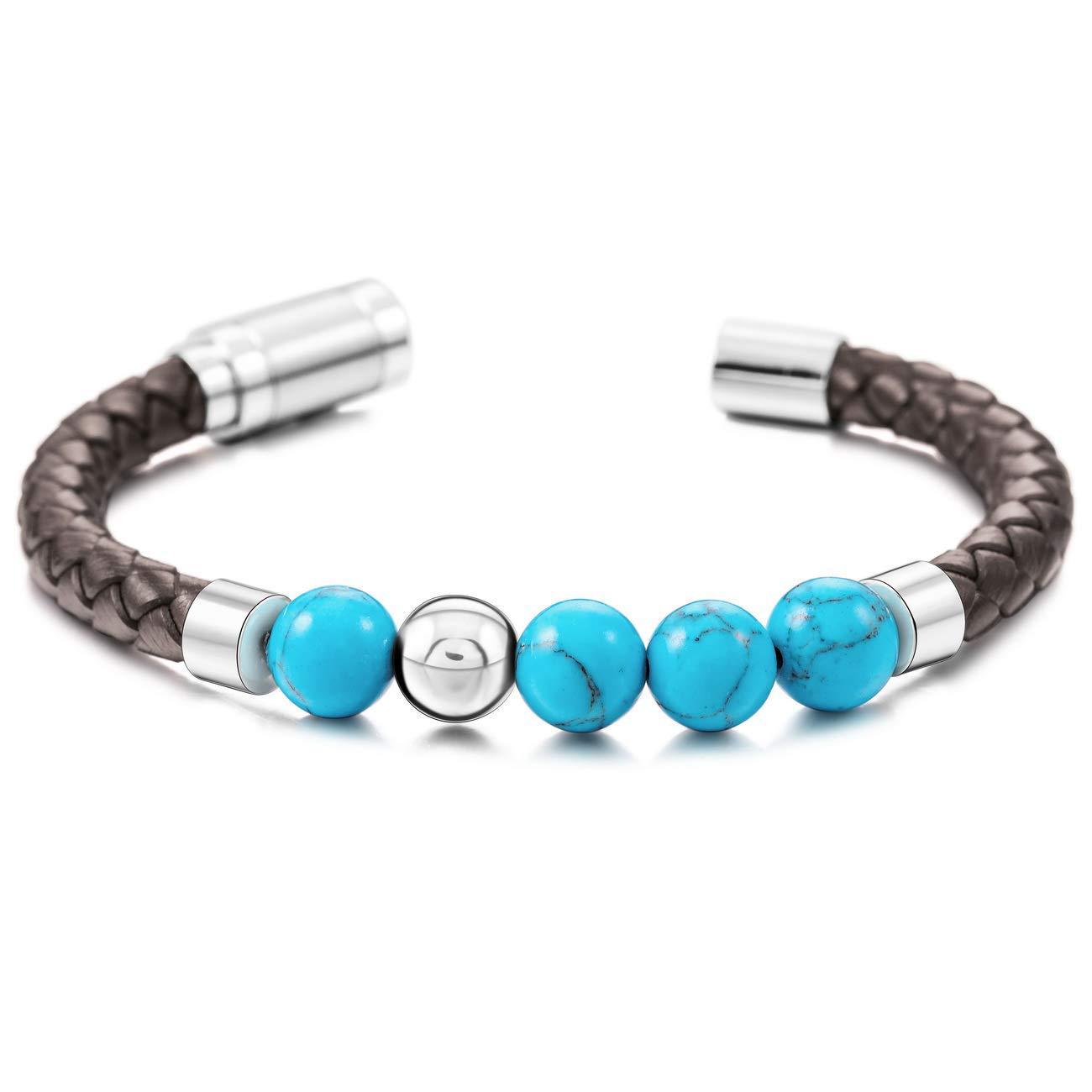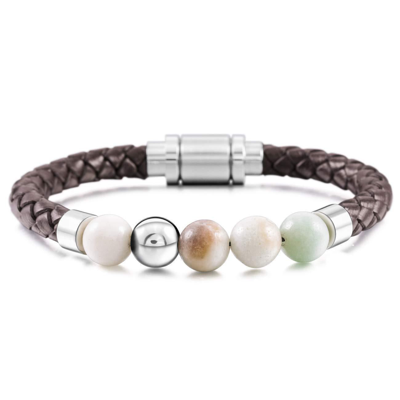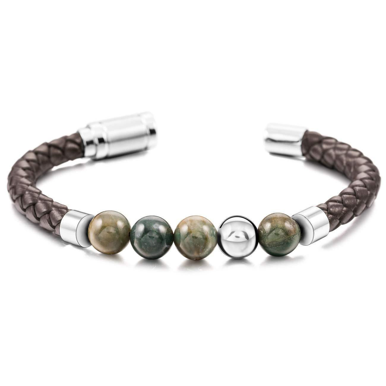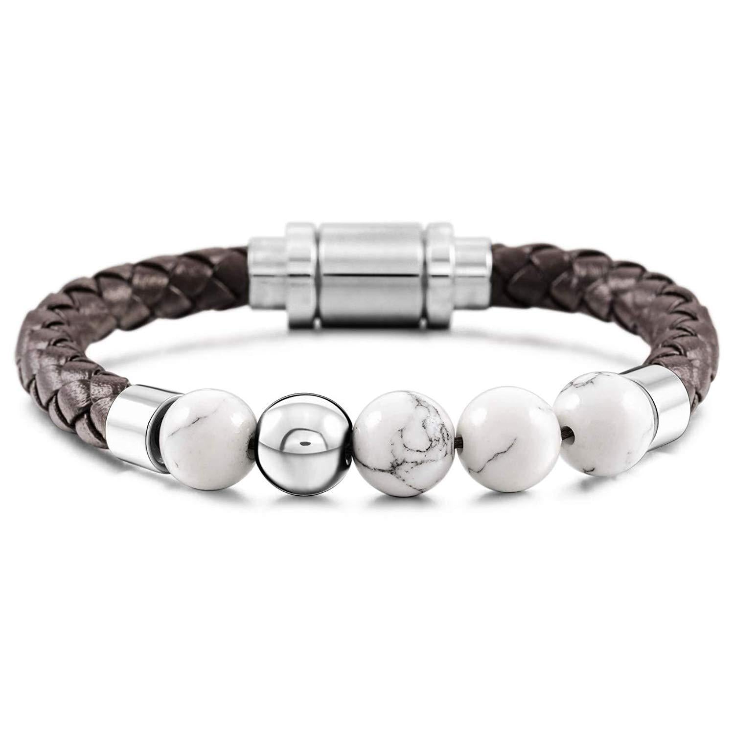 Stainless Steel Magnetic Clasp Genuine Leather Bracelet Stone Bracelet