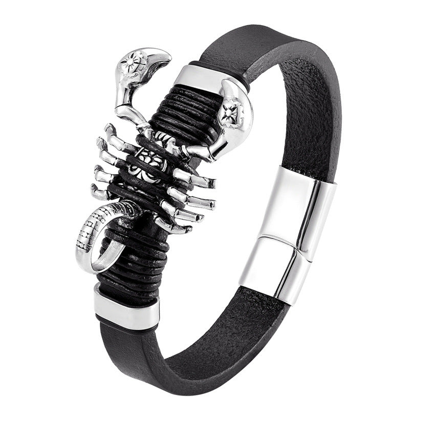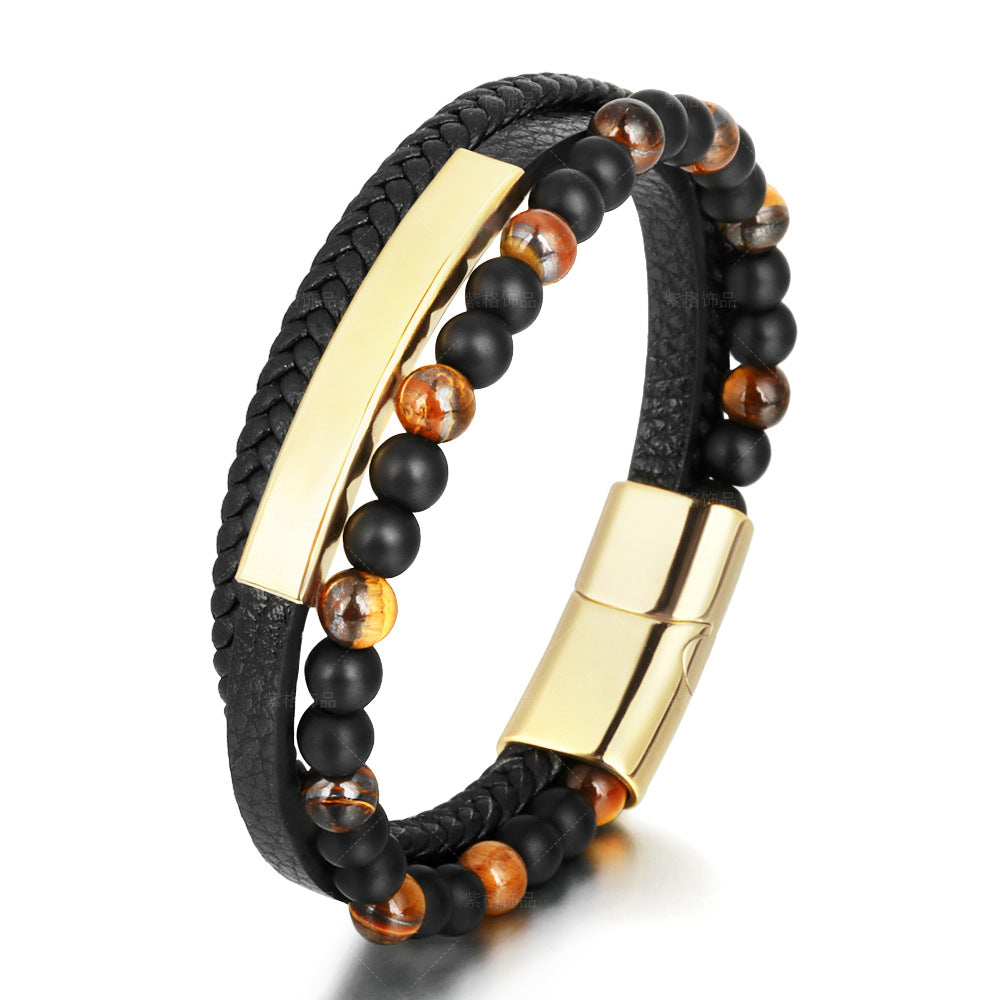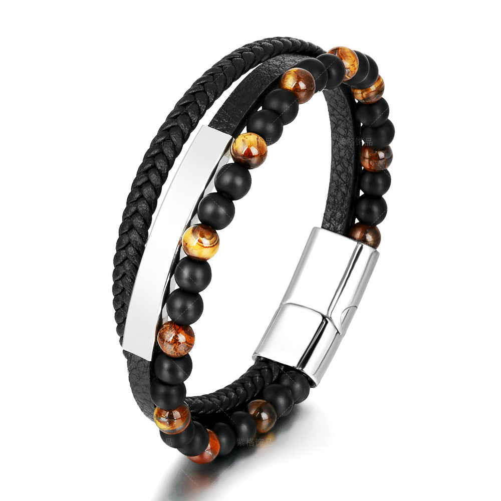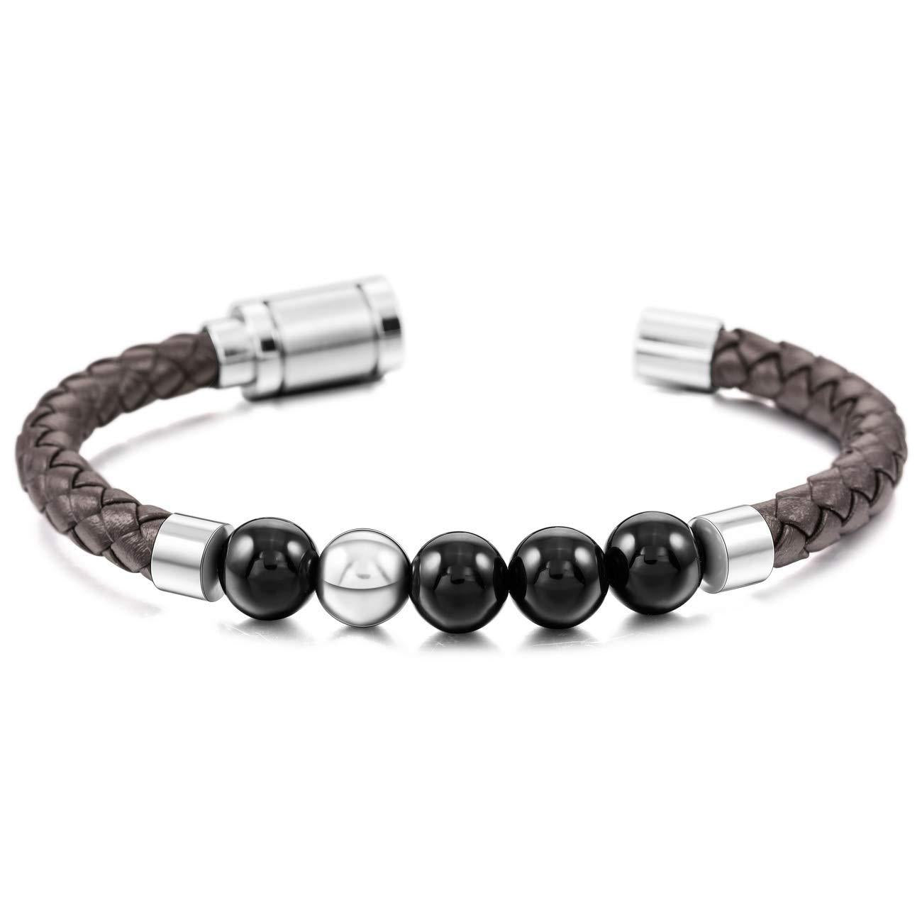 Stainless Steel Magnetic Clasp Genuine Leather Bracelet Stone Bracelet