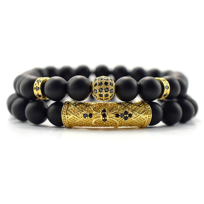 Natural Stone Bead Bracelet Men's Square Emperor Stone Charm Bracelet