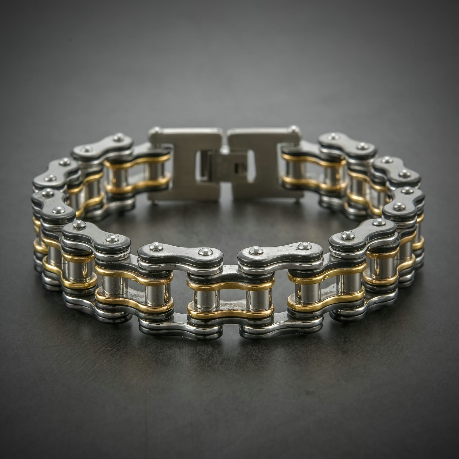 Stainless Steel Black Gold Bicycle Bracelet Titanium Steel Men