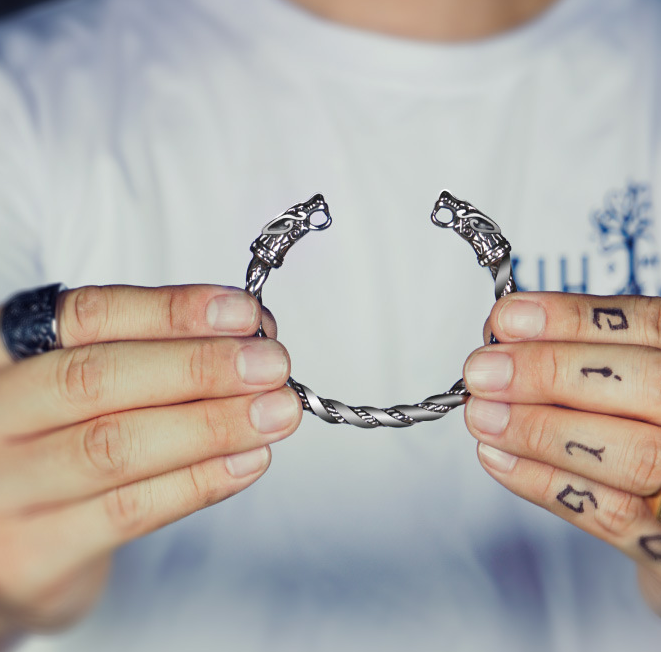 Toten Design Nordic Viking Odin Bracelet Genuine Leather Wolf Head Bracelet For Men Animal Bracelet