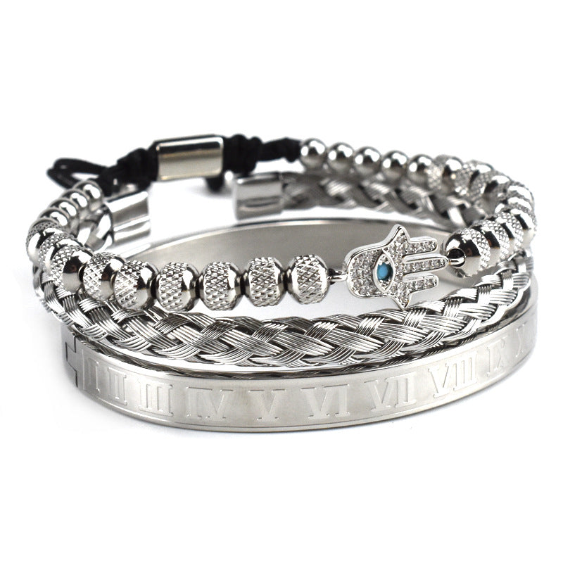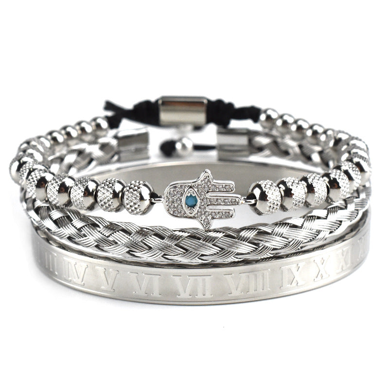 Stainless Steel Roman Digital Bracelet Braided Twist Suit For Men