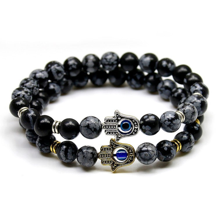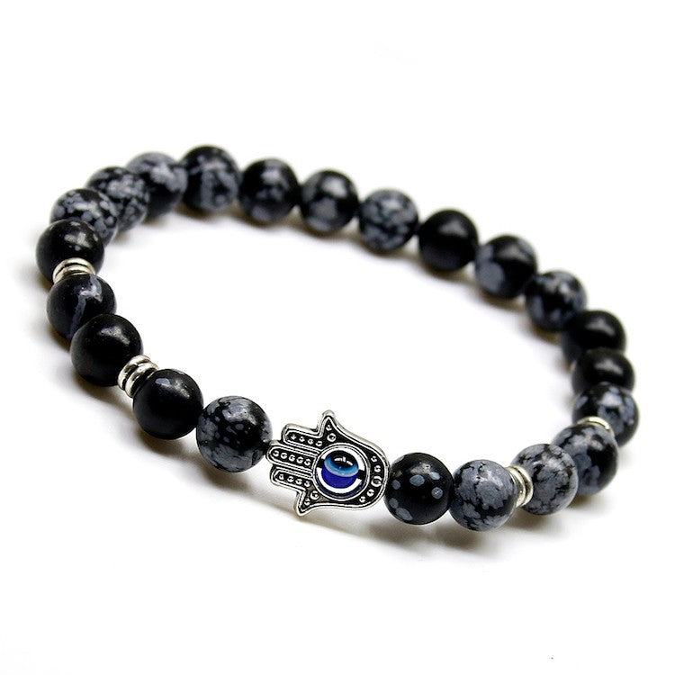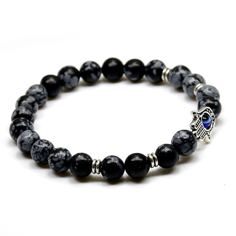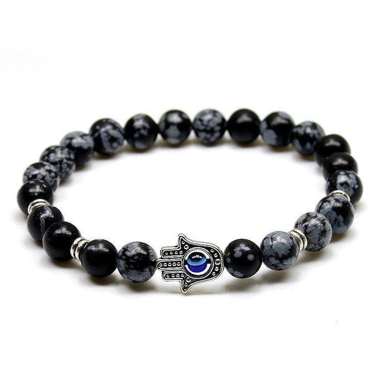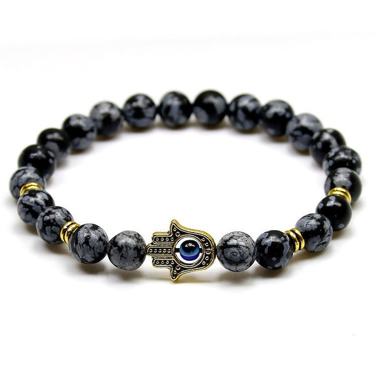 Natural Stone Stretch Bracelet Fatima Palm Bracelet Evil Eye Beads