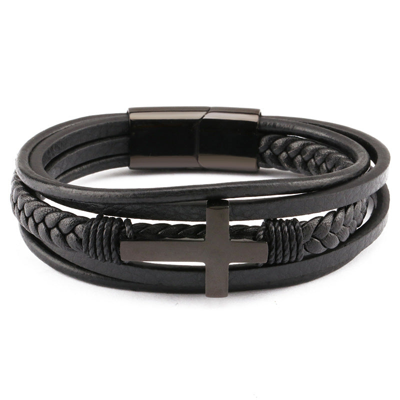 Men's Leather Bracelet Retro Multilayer Braided Titanium Steel Love Bracelet
