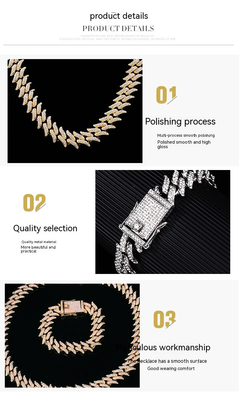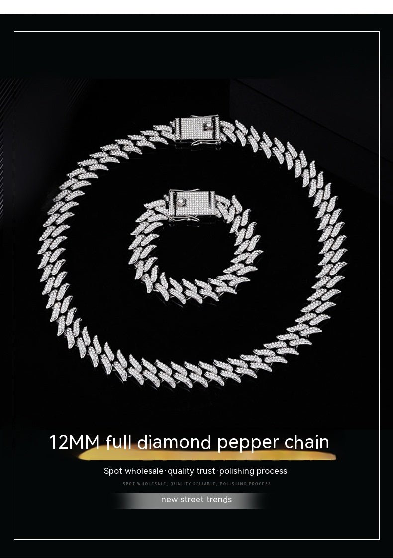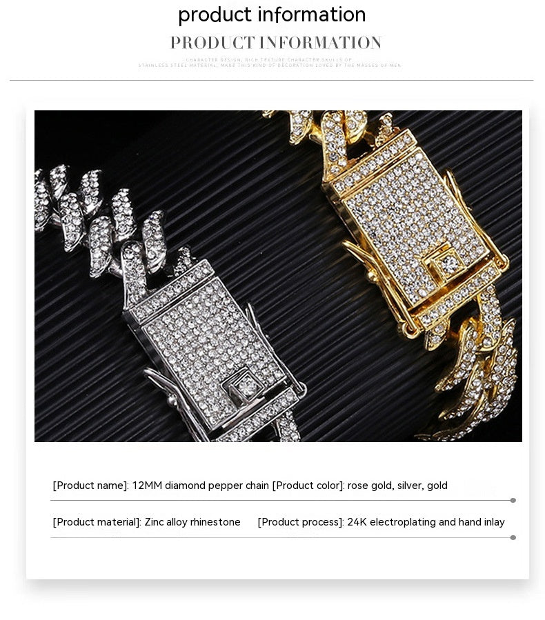 Pepper Chain Hipster Hip Hop Rhinestone Cuban Link Chain Same Style