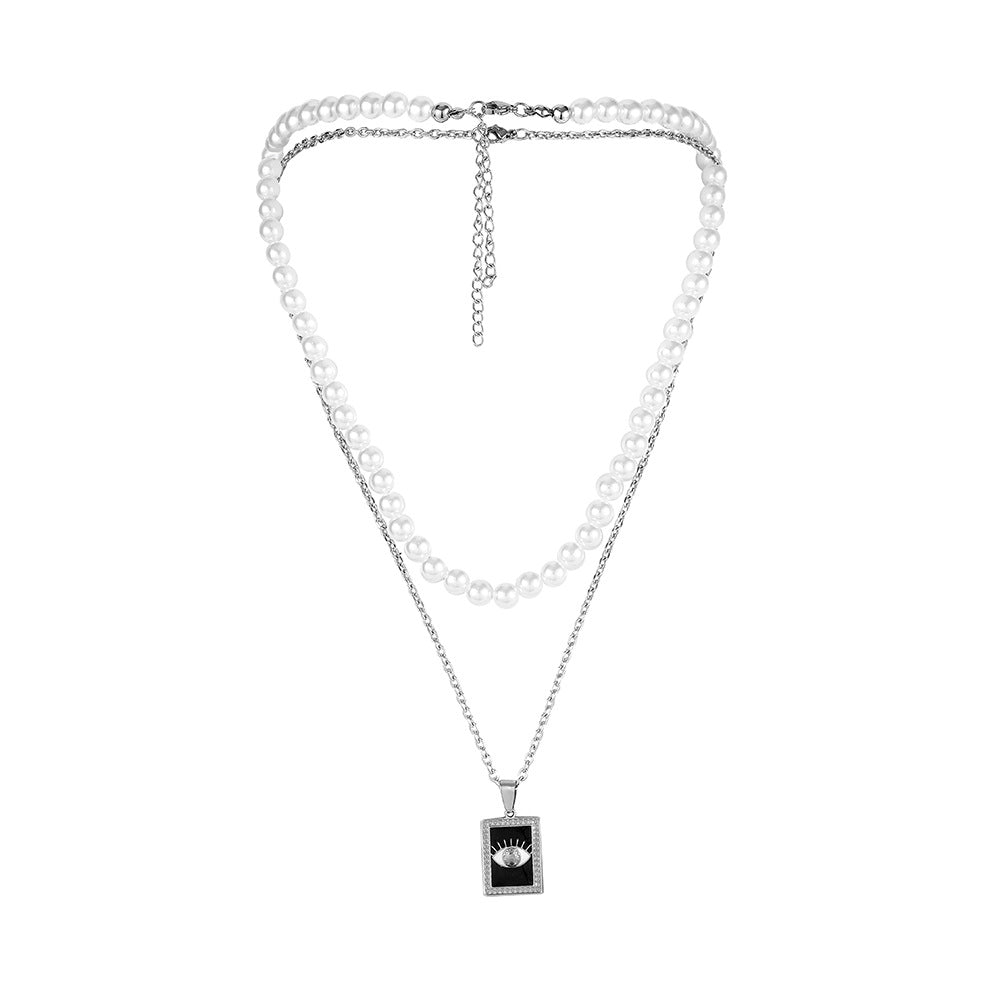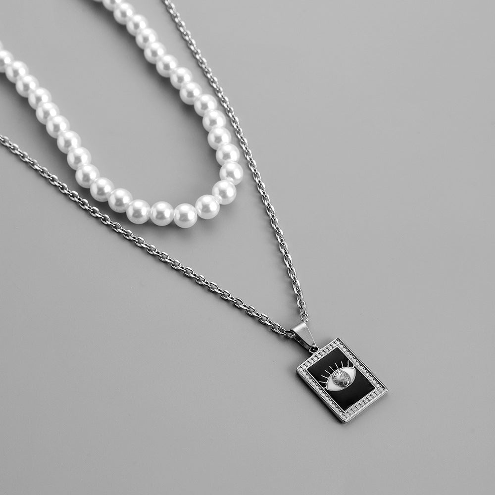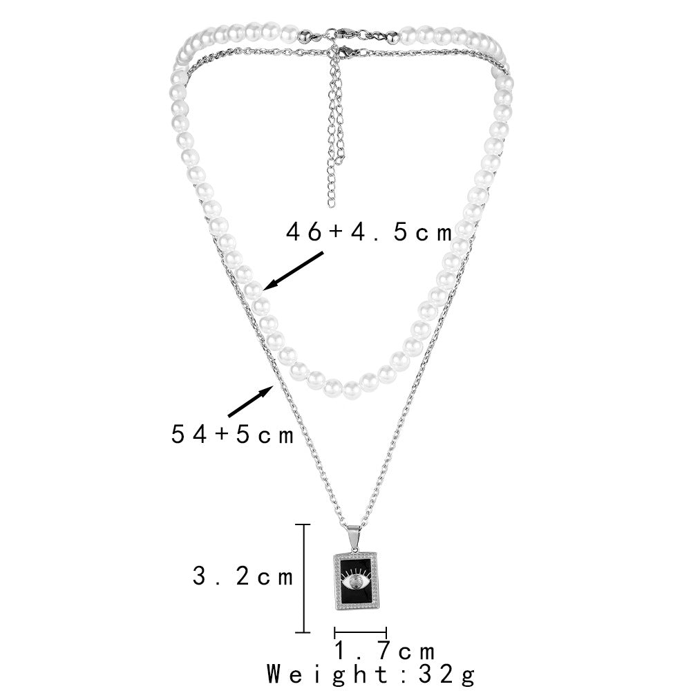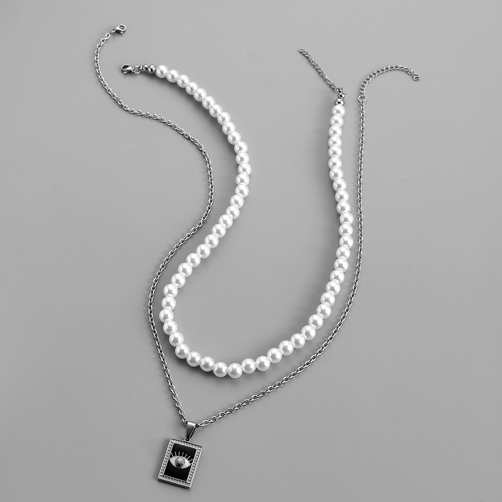 Stylish And Simple Personality All-Match Stainless Steel Square Plate Eye Pearl Chain