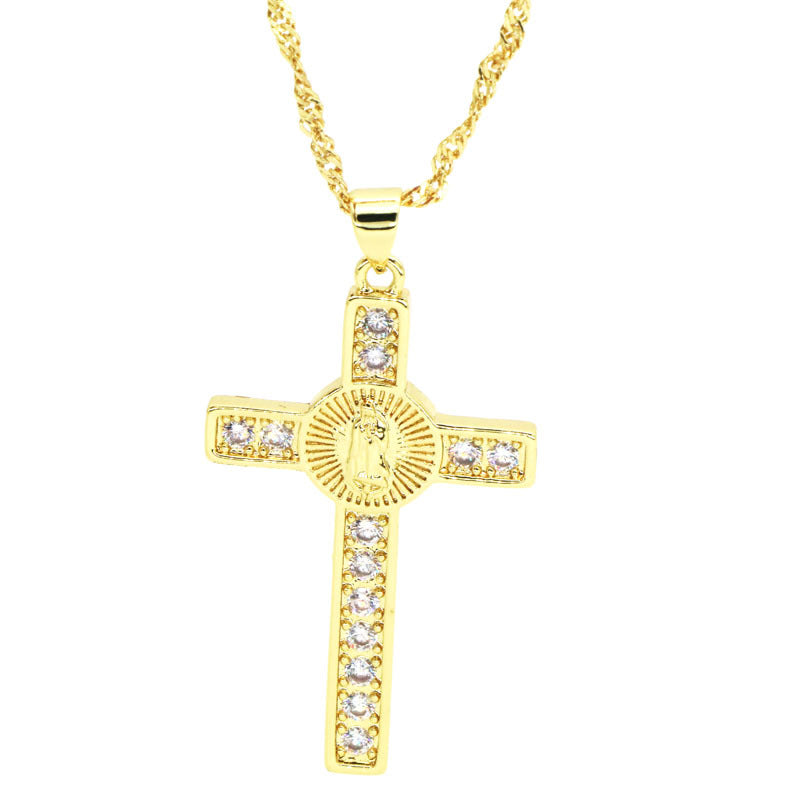 925 Sterling Silver Cross Pendant With Stainless Steel Figaro Chain Oxidized Cross Necklace Christian Jewelry