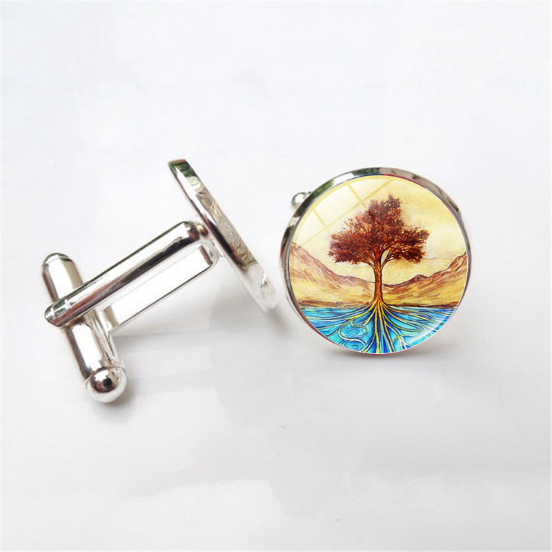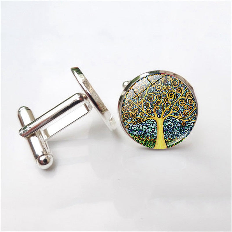 Introducing the Tree of Life Time Gem Cufflinks, expertly crafted with precision die-casting and protected with a durable electroplating layer. These cufflinks feature a 1.6cm glass pattern in a silver color, adding a touch of elegance to any outfit. Affordable and unique in design, they make the perfect gift for any occasion. Available in silver-plated, gold-plated, and bronze colors, these cufflinks are a must-have. The cufflinks are exquisite in workmanship, beautiful and unique. Please note that colors may vary slightly due to different monitors. Order yours today and enjoy the beauty and meaning of these tree of life cufflinks!