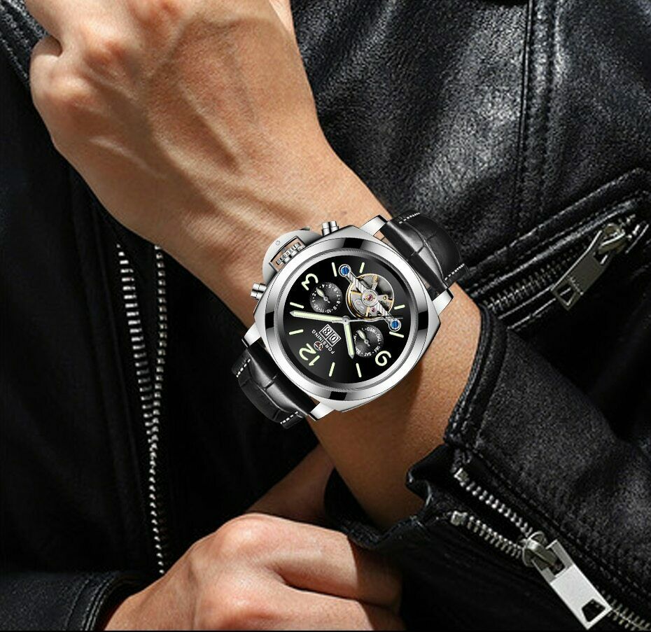 Double-Sided Skeleton Luminous Men's Watch Automatic Belt Mechanical