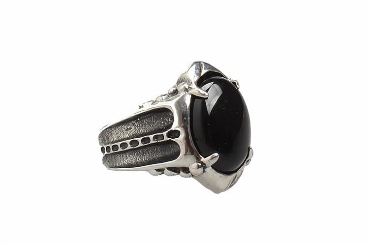 Punk Goth Vintage Gemstone Titanium Steel Casting Men's Ring