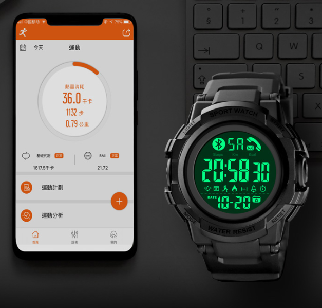 Functions: Display the day of the week, alarm clock, luminous light, step counting, exercise mileage, calorie calculation, running seconds, application push, reminder function, data storage, call reminder, remote shooting, Bluetooth function