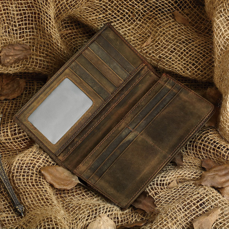 Men's Wallet Retro Crazy Horse Leather Long Vertical Wallet