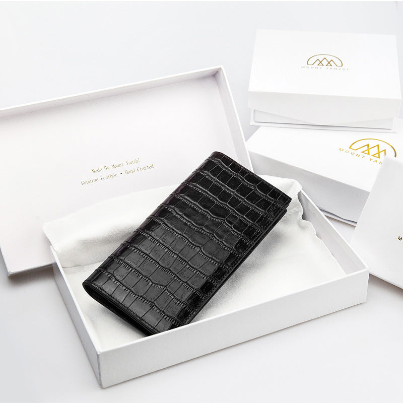 Crocodile Pattern Cowhide Wallet Men's Long Genuine Leather Wallet