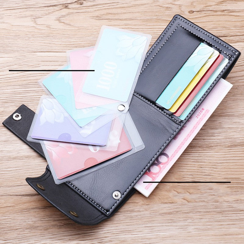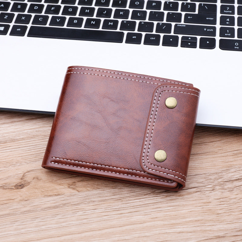 Button Purse Short Men's Money Clip Oil Wax Leather