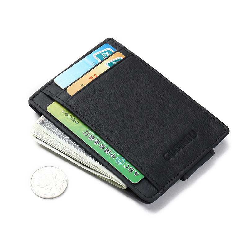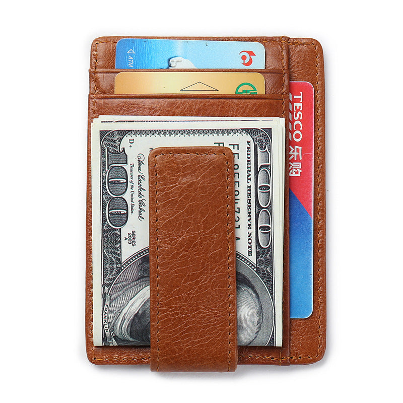 Fashion Men Magnet Money Clip Thin Credit Card Holder Genuine Leather Front RFID Pocket Wallet Blocking