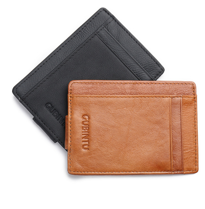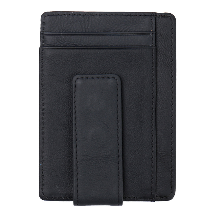 [Features]: Foreign trade style, style high-end fashion simple, soft and comfortable top layer cowhide anti-magnetic gold clip.