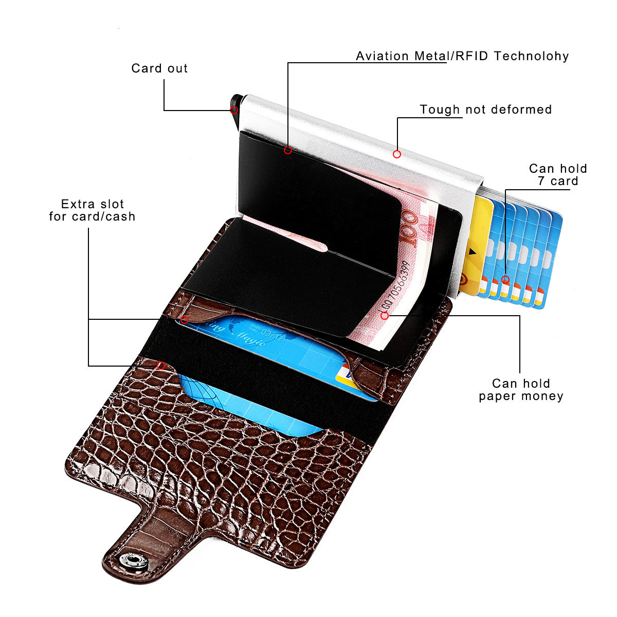 Pu Artificial Leather Crocodile Pattern Men's Wallet Aluminum Box Clip