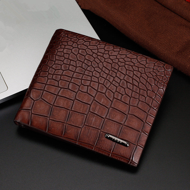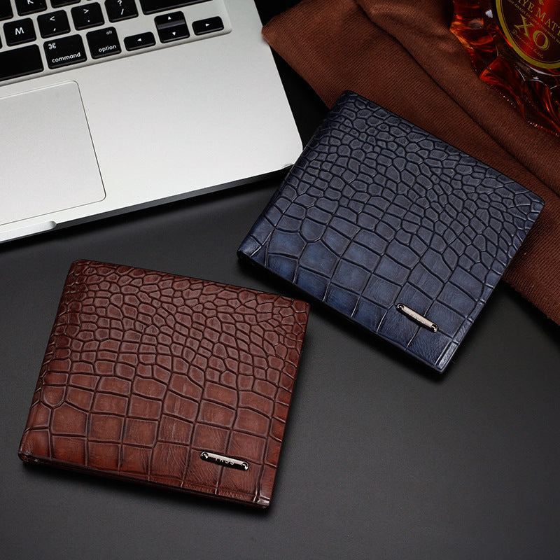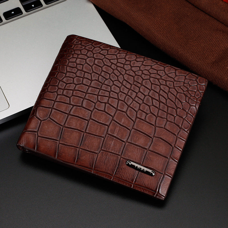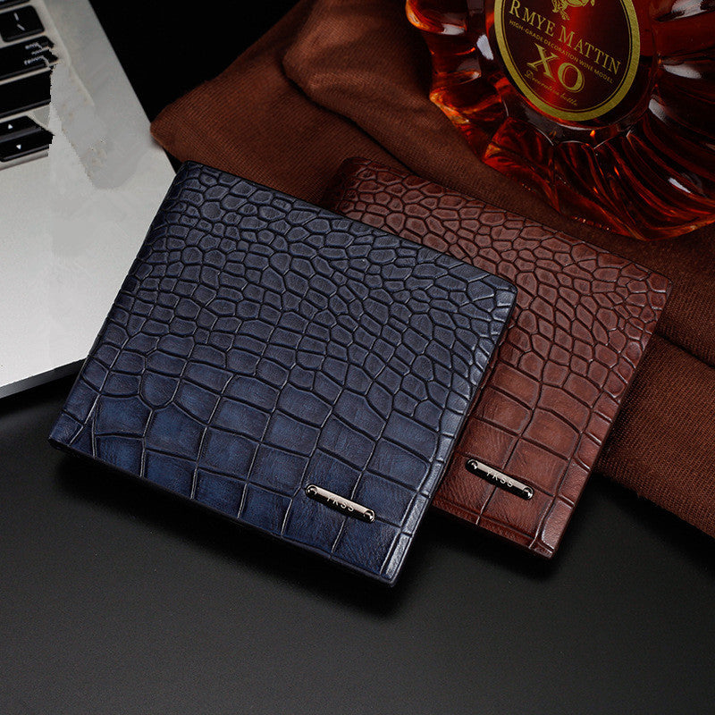 Men's Short Wallet Casual Crocodile Pattern Wallet Money Simulation Pickup Bag Folding