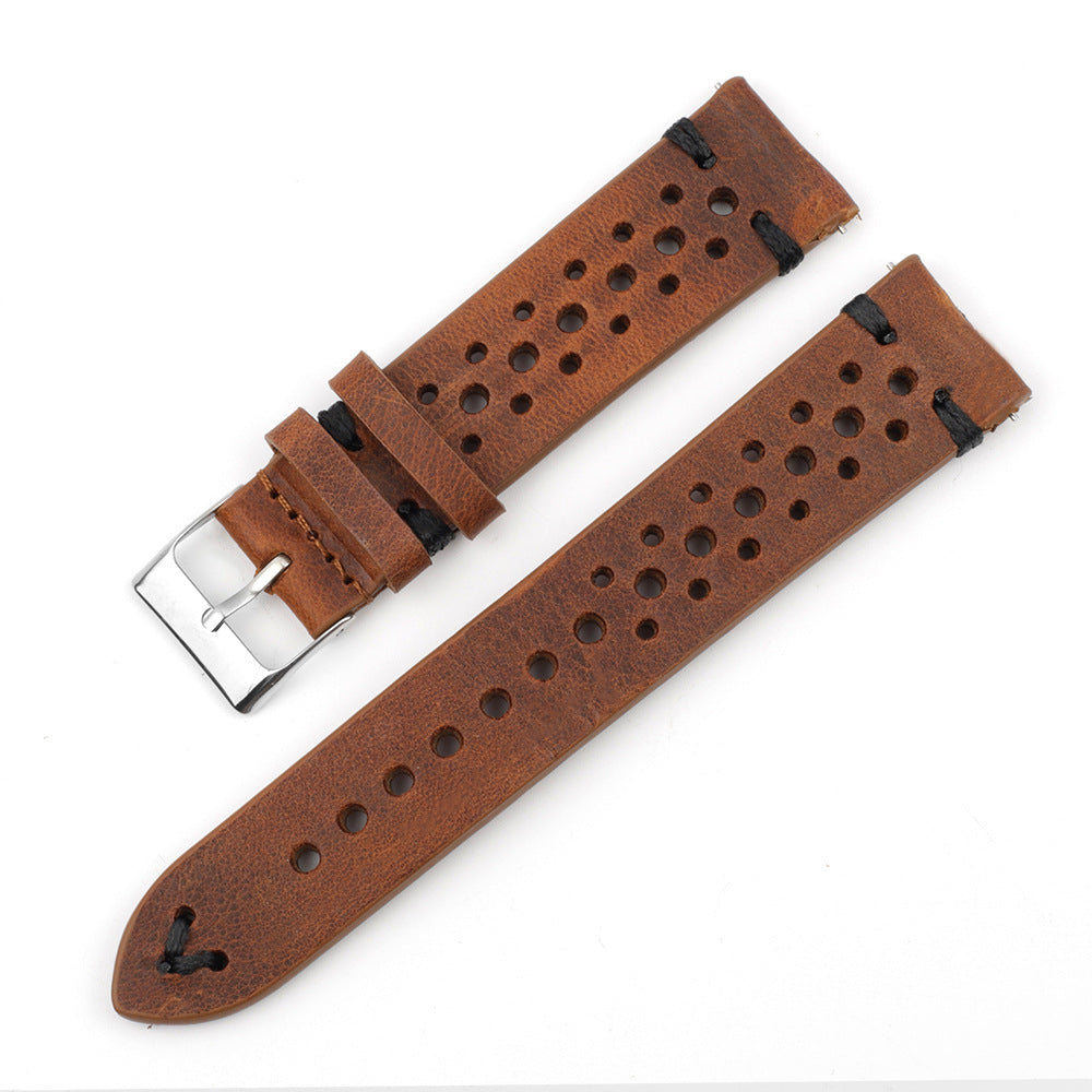 Gray-Blue Multi-Hole Stitching Leather Watch Band