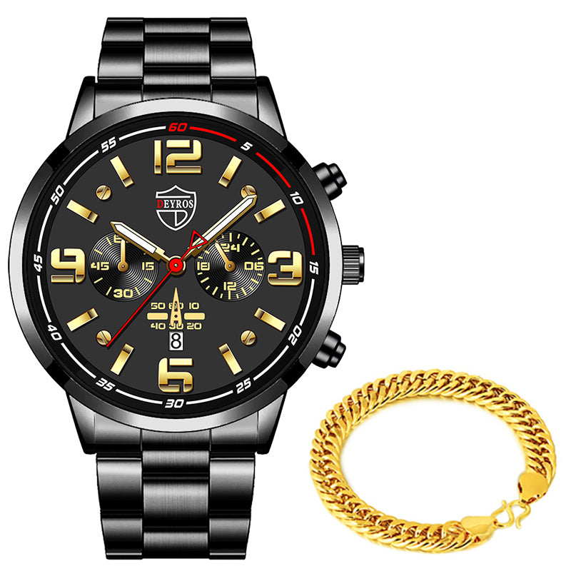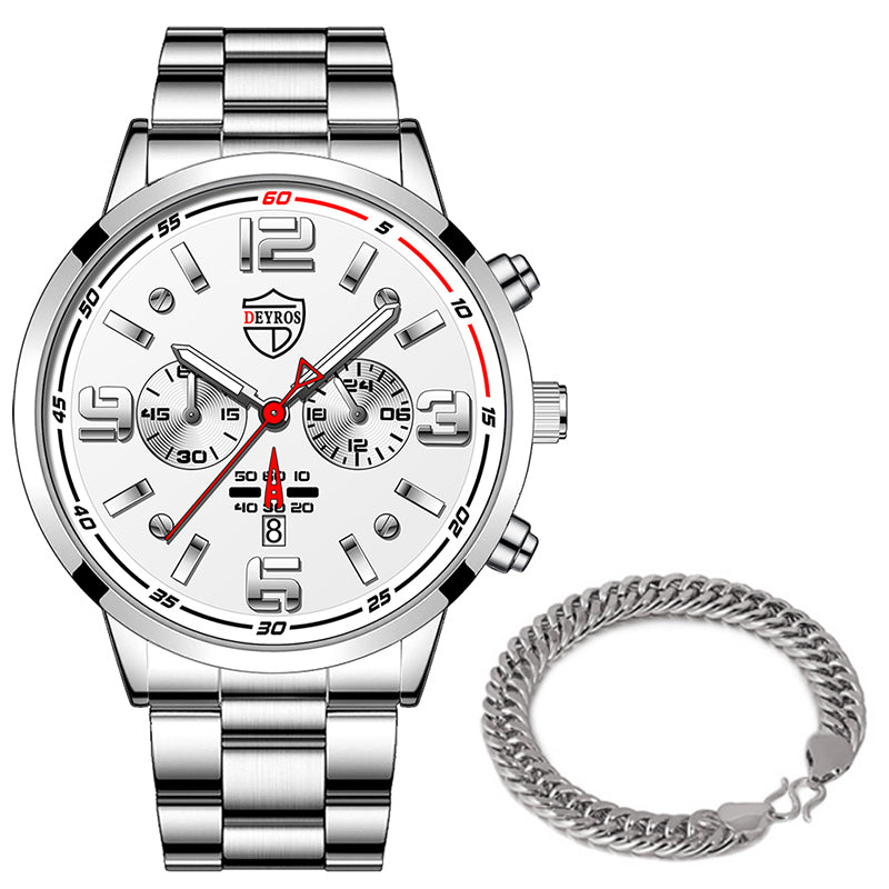 Men's Large Dial Quartz Watch Plus Bracelet Set