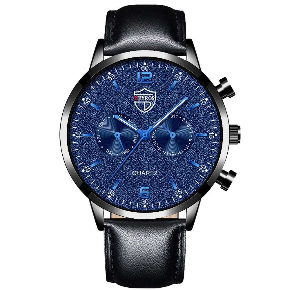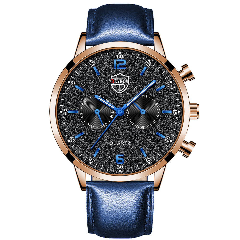 Waterproof Quartz Multifunctional Men's Calendar Belt Watch