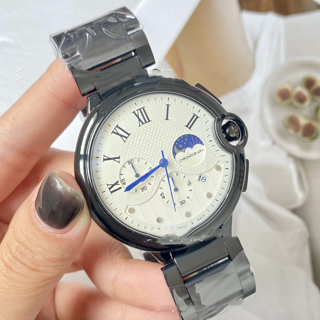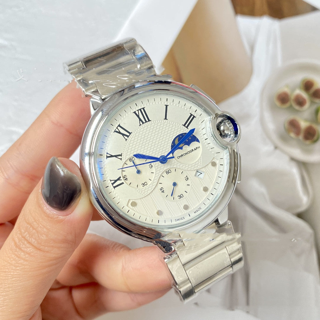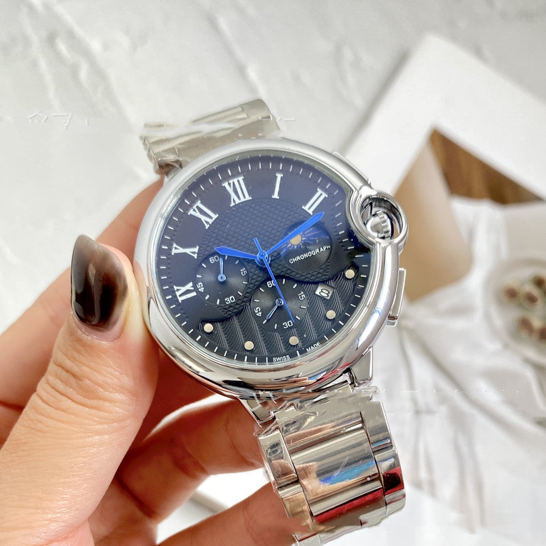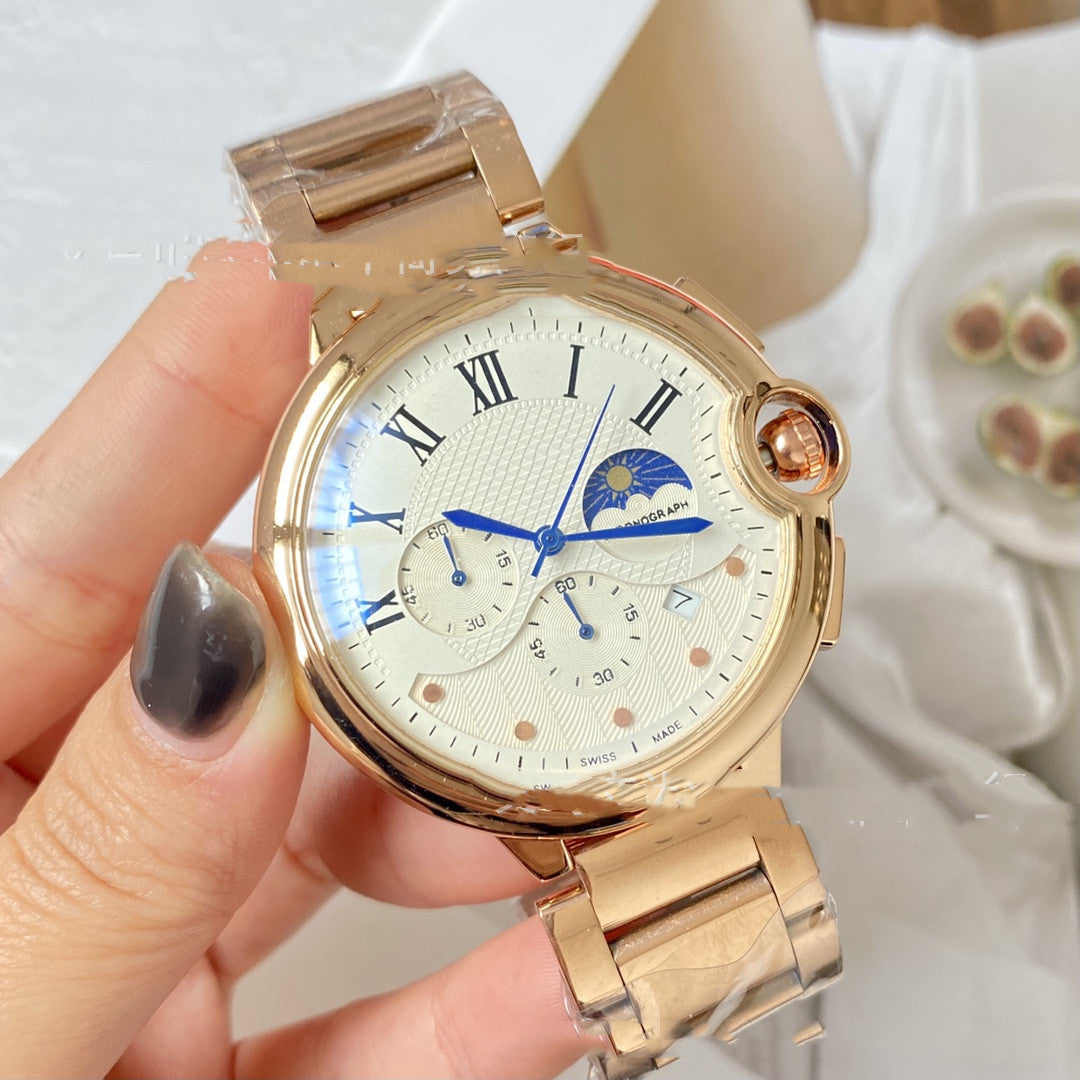 Simple Three-Hand Calendar Moon Phase Exquisite Design Watch