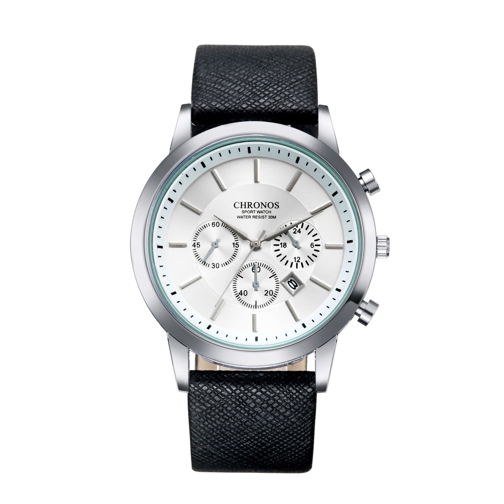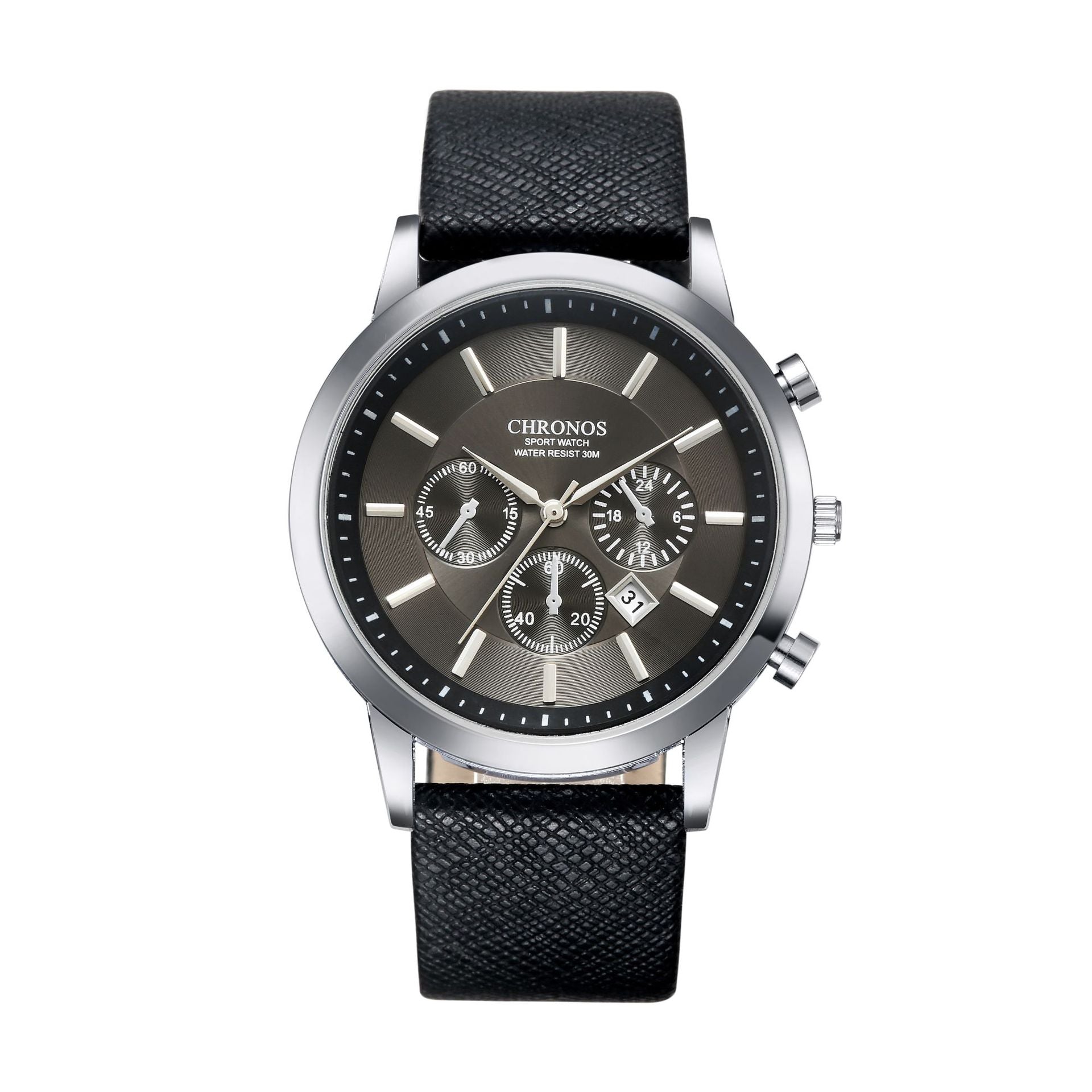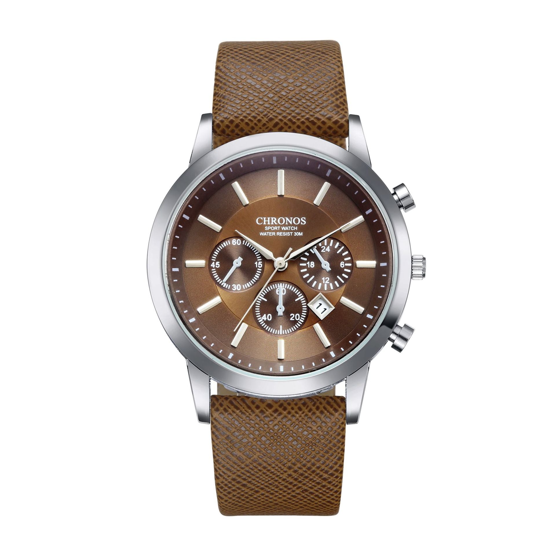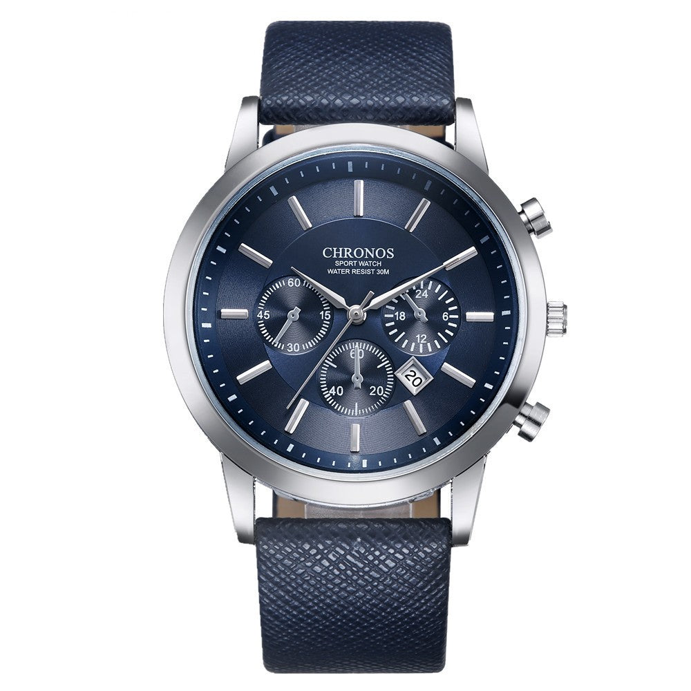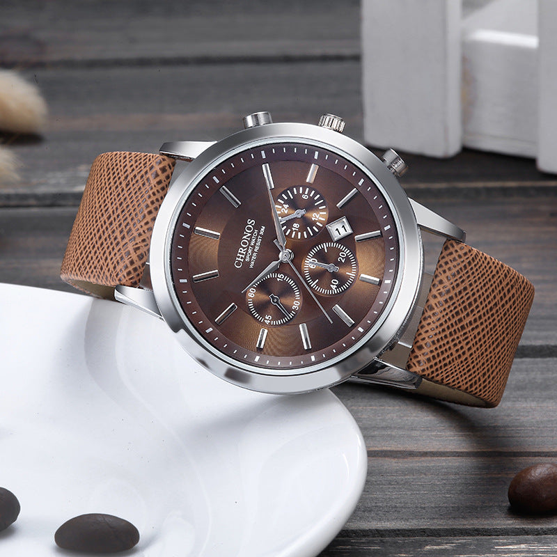 Retro Men's Multifunctional Genuine Leather Quartz Watch