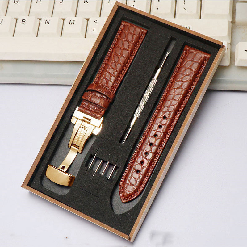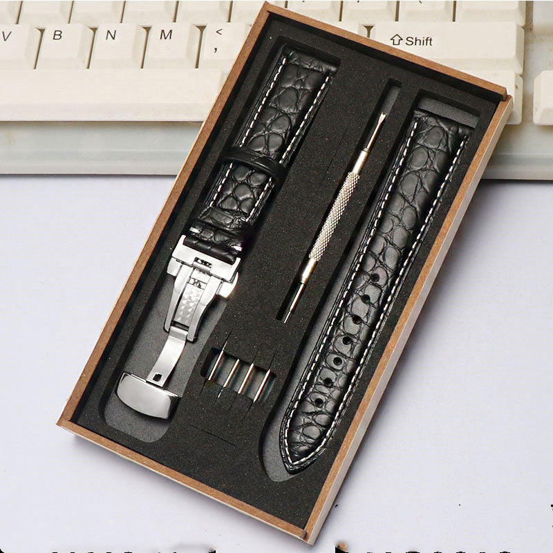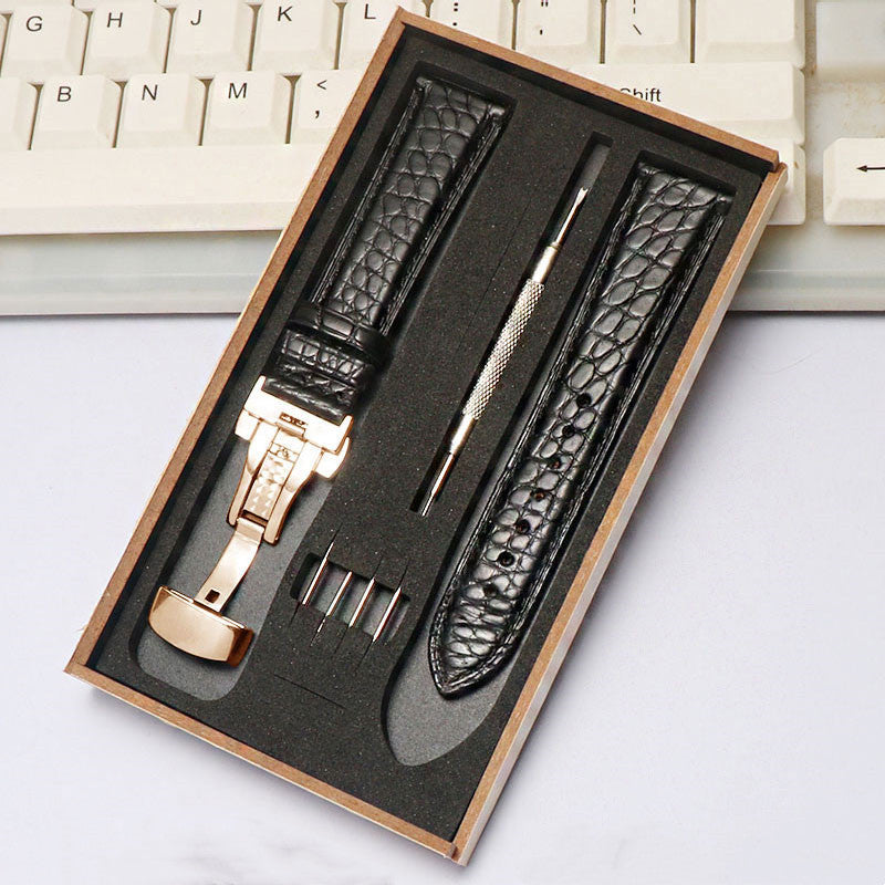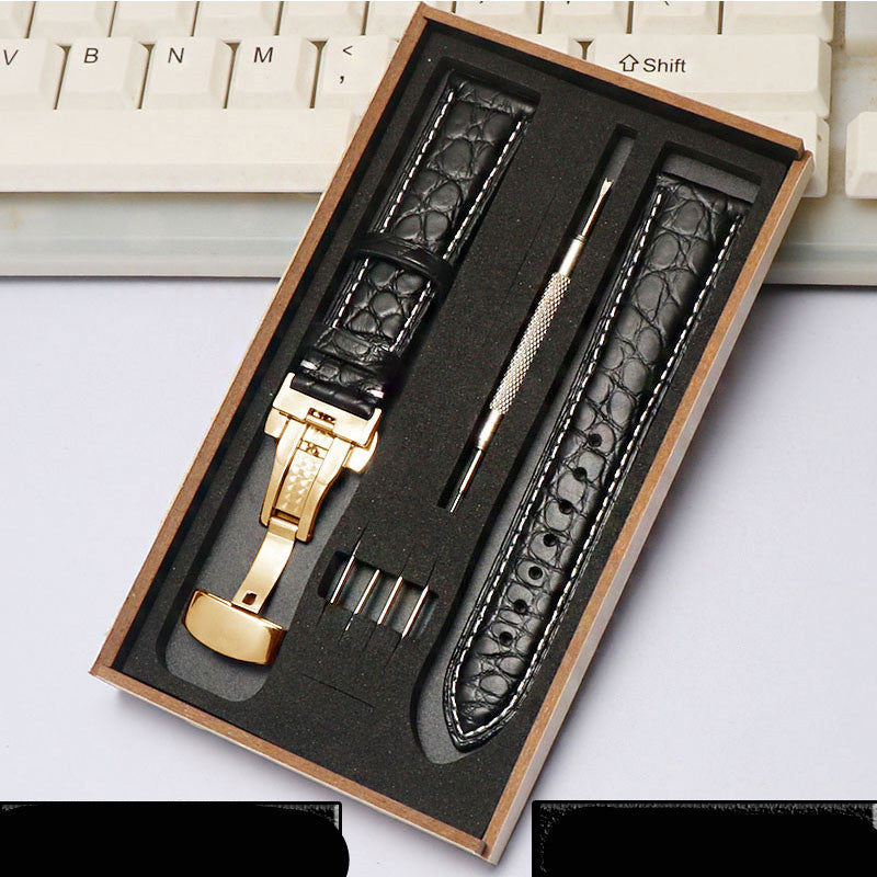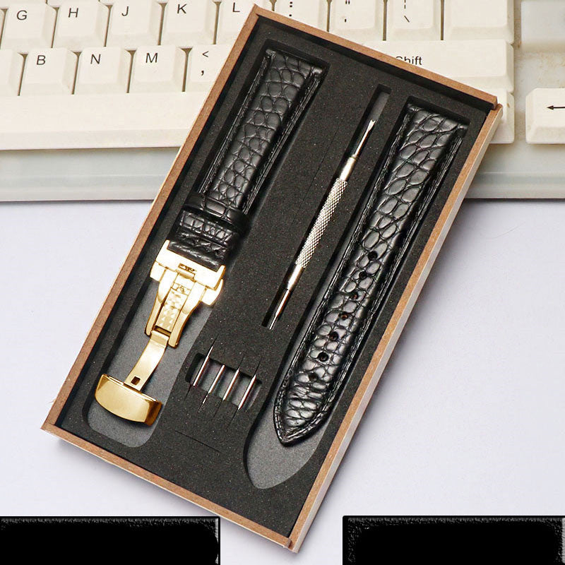 Crocodile Leather Four-Leaf Clover Men's and Women's Butterfly Clasp Bracelet Accessories
