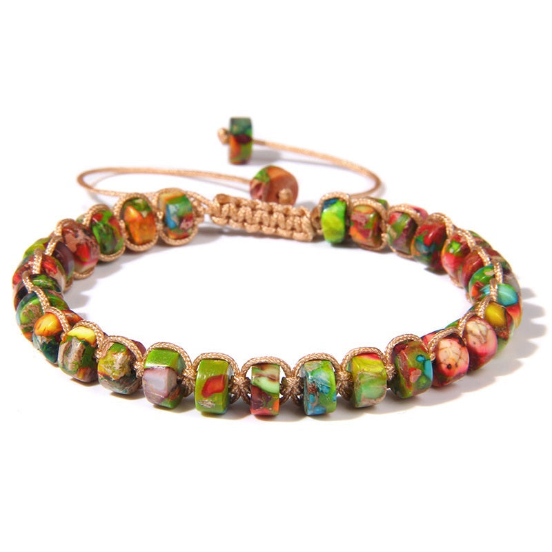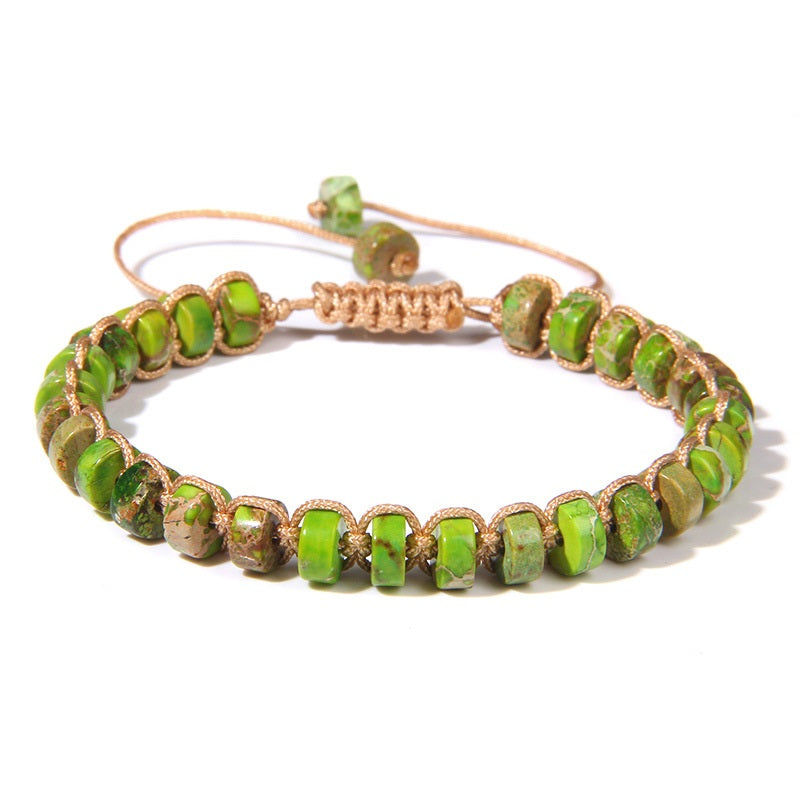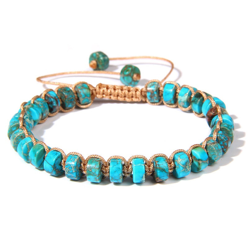 Natural Turquoise Hollow Bead Fashion Single Circle Hand-Woven Bracelet