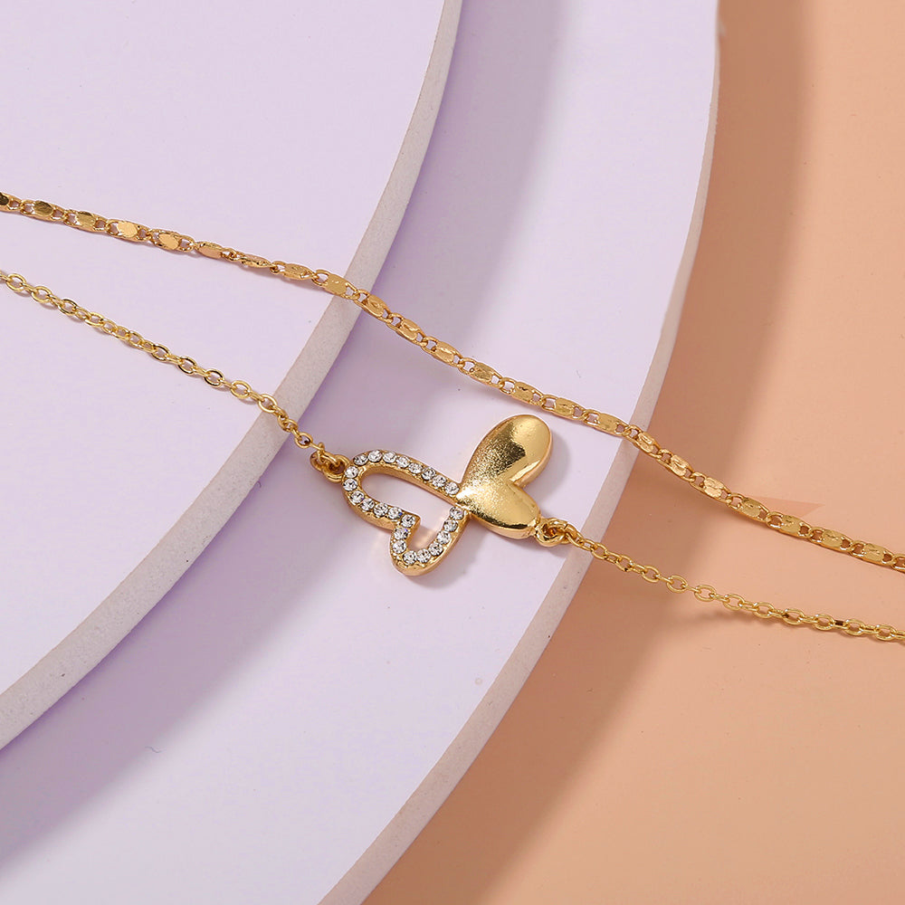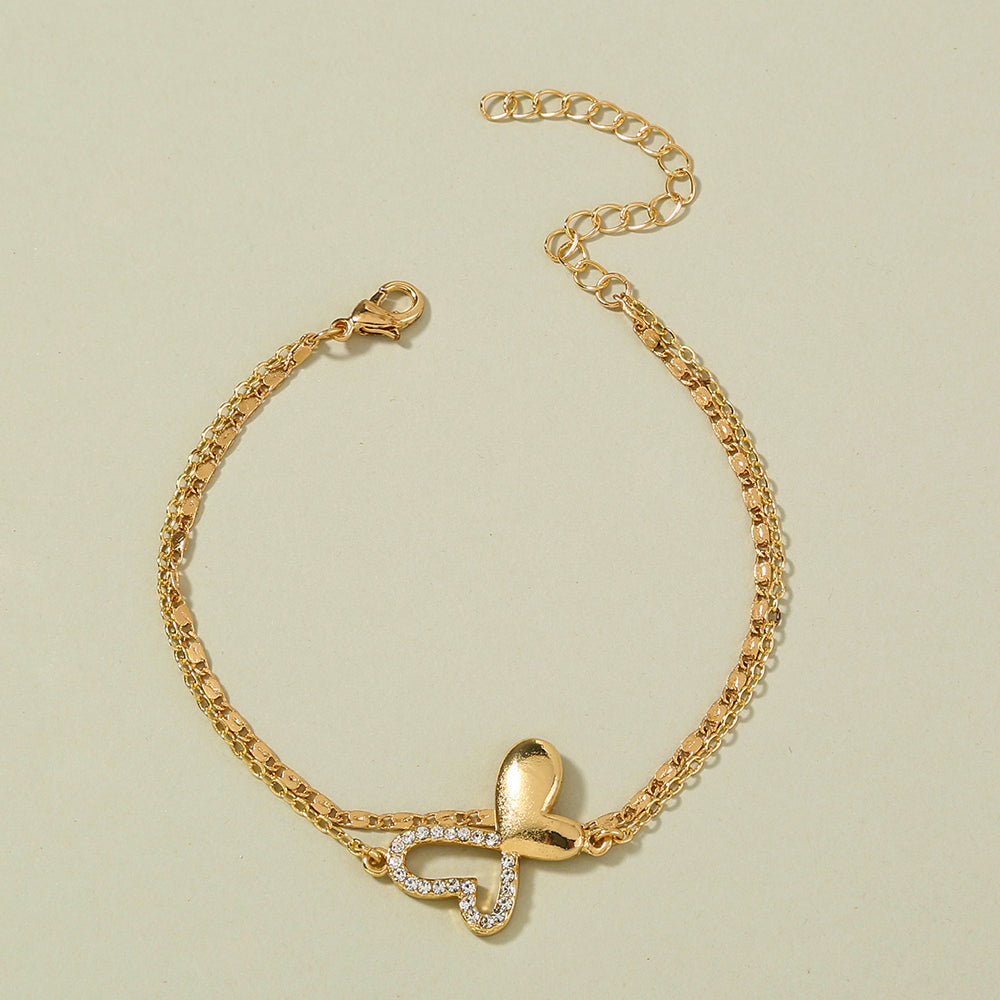 Net Celebrity Ins Hot-Selling Jewelry Butterfly Double-Layer Hollow Diamond Bracelet Pendant Student Girlfriends Bracelet