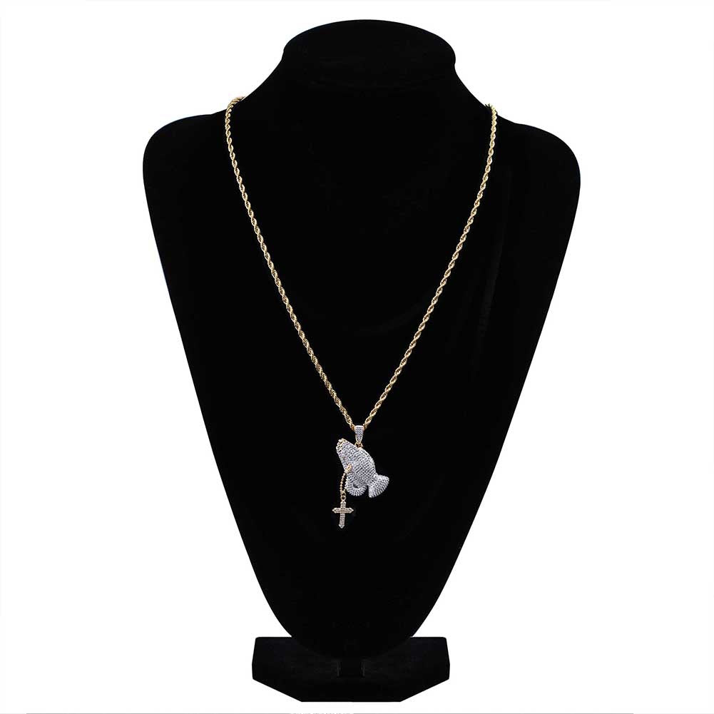 Celebrity Pendant Necklace With Praying Hands And Cross