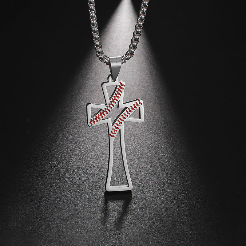 Baseball Necklace Creative Stainless Steel Cross Pendant