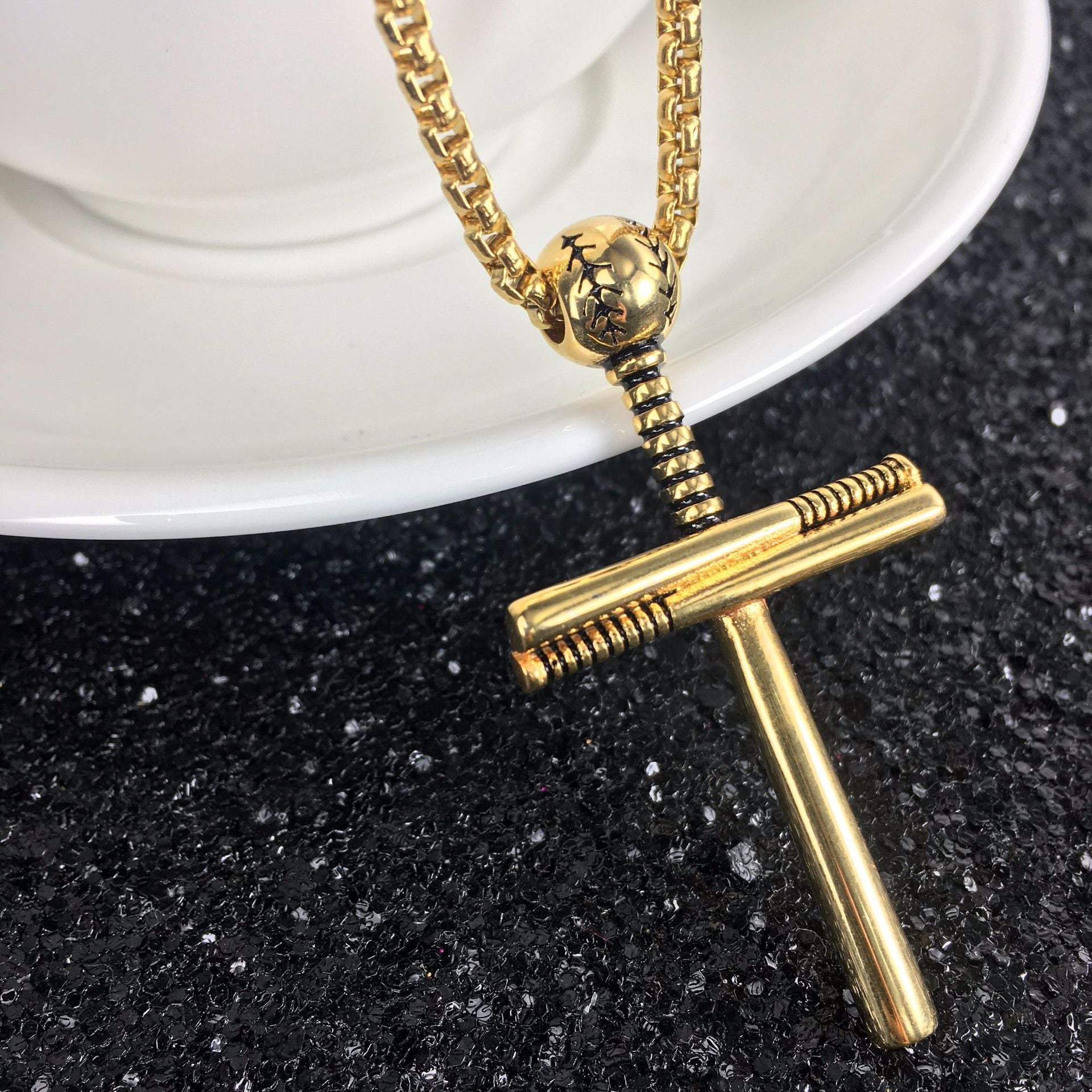 Baseball Necklace Creative Stainless Steel Cross Pendant