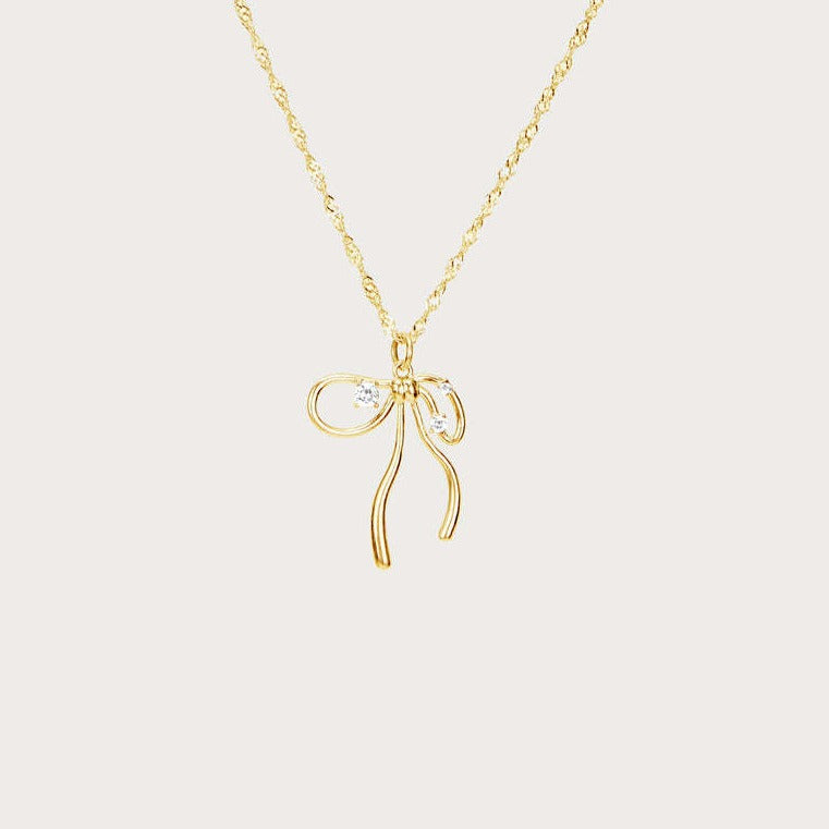 Niche Bone Chain Bow Zircon Sweet Necklace Copper-Plated Gold