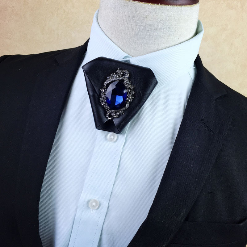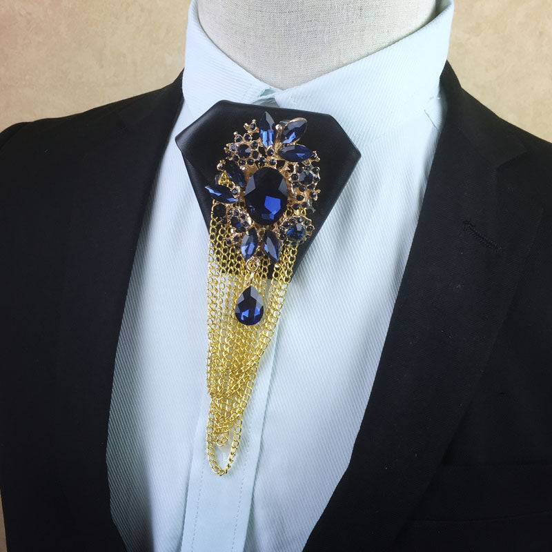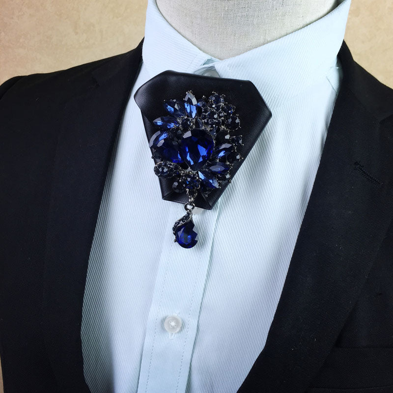 Men's Bow Tie Groom Wedding Diamond Collar Flower Dress Shirt