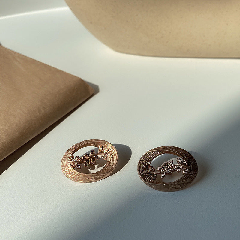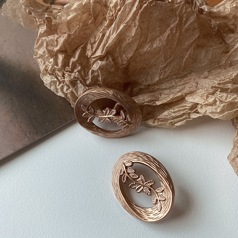 Metal Button Hollow Leaf Shell Decorative Trench Coat