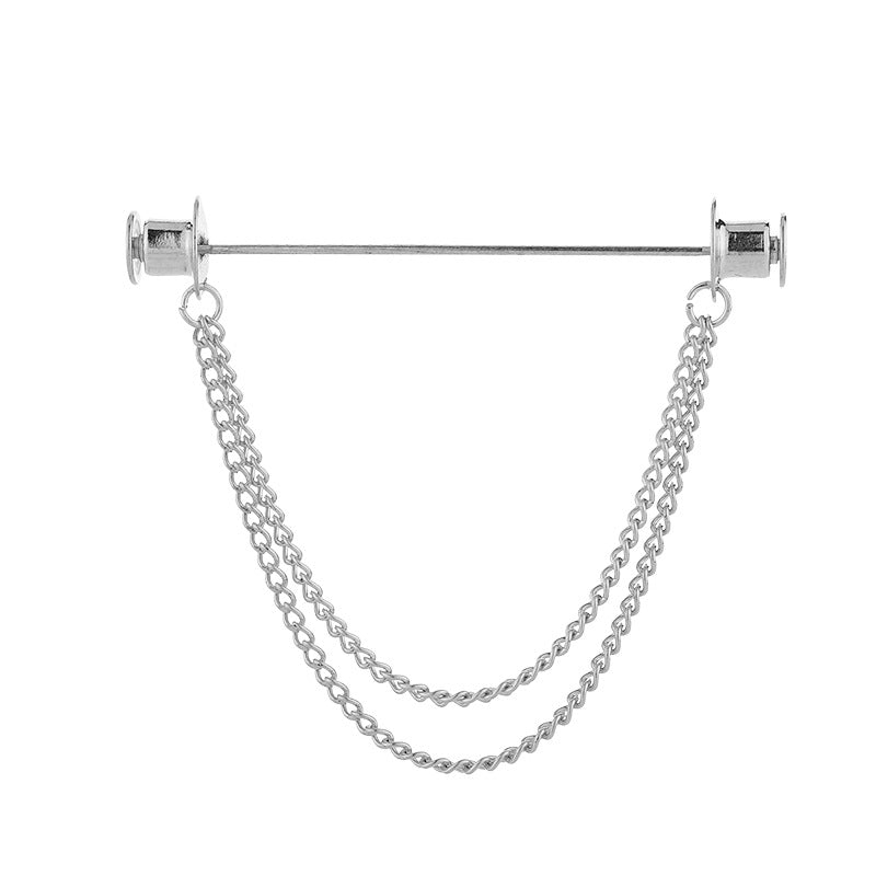 Metal Chain Tassel Pin Men's Shirt Bar Shaped Pin Suit Collar Pin Collar Buckle Accessories