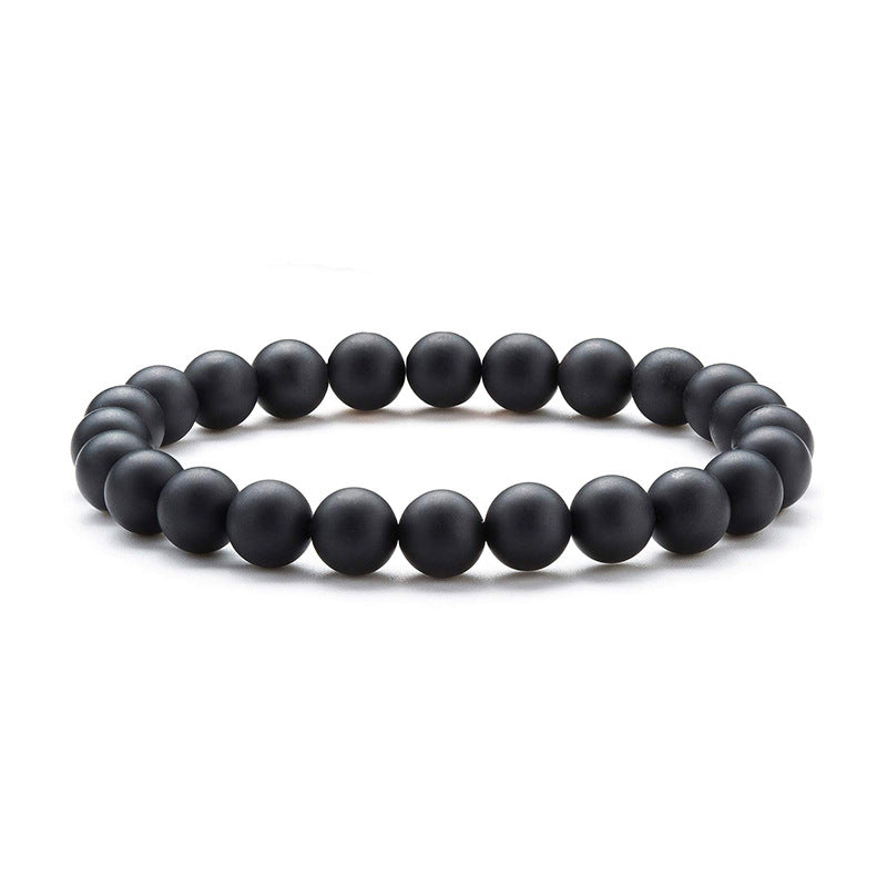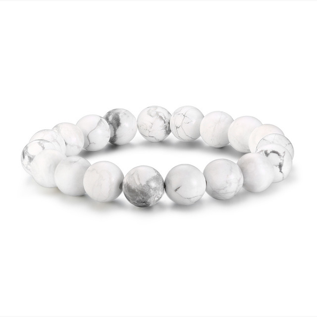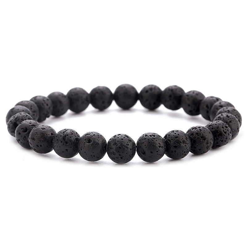 Natural Stone Beads Black Lava Rock Stone White Stretch Charm Strand Bracelet