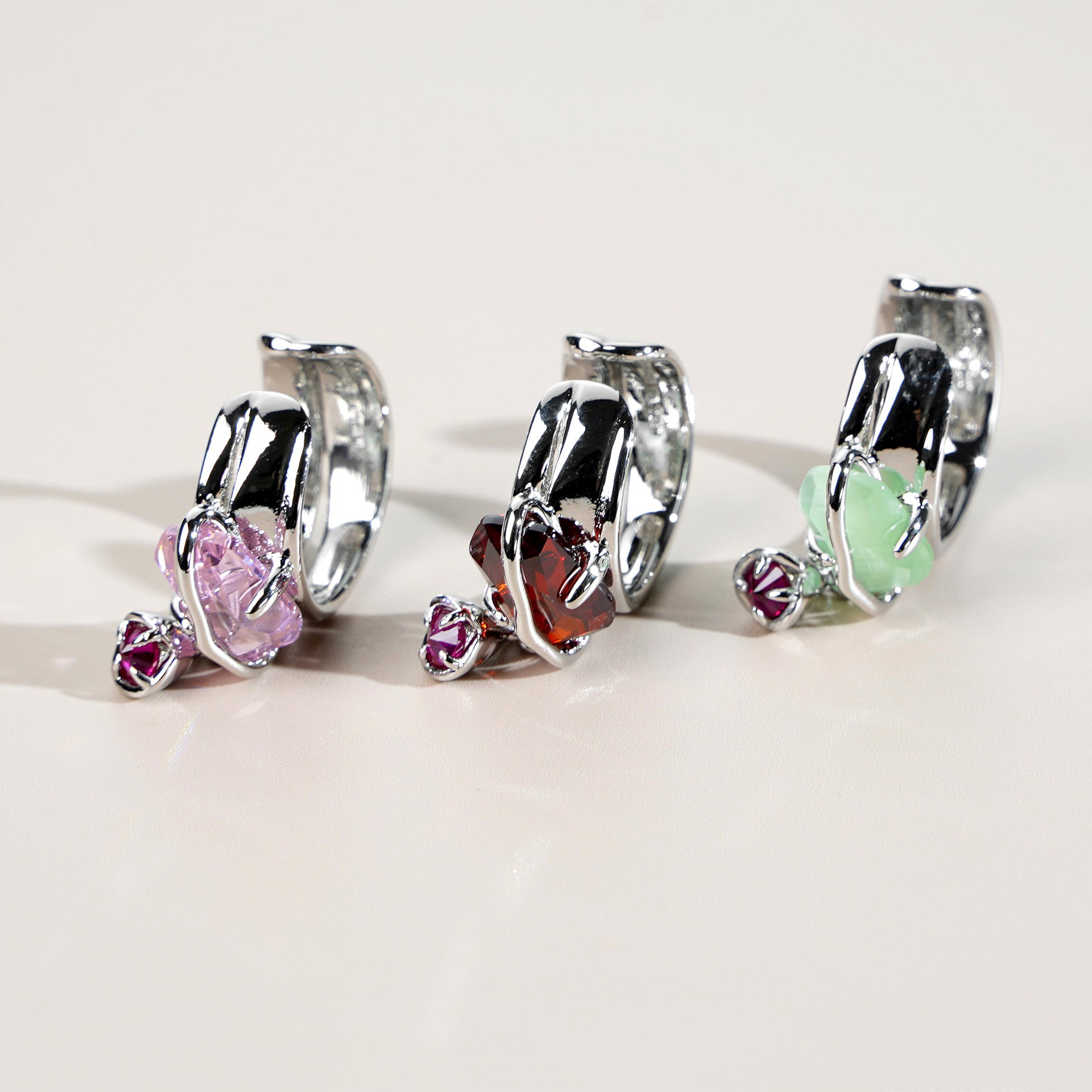 Peach Blossom Crystal Earrings Without Pierced Ears