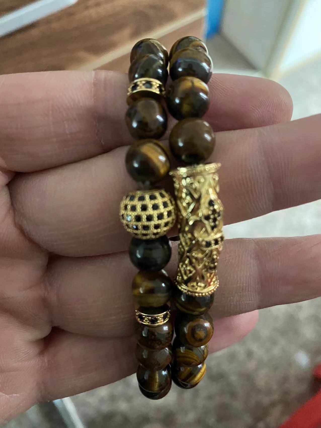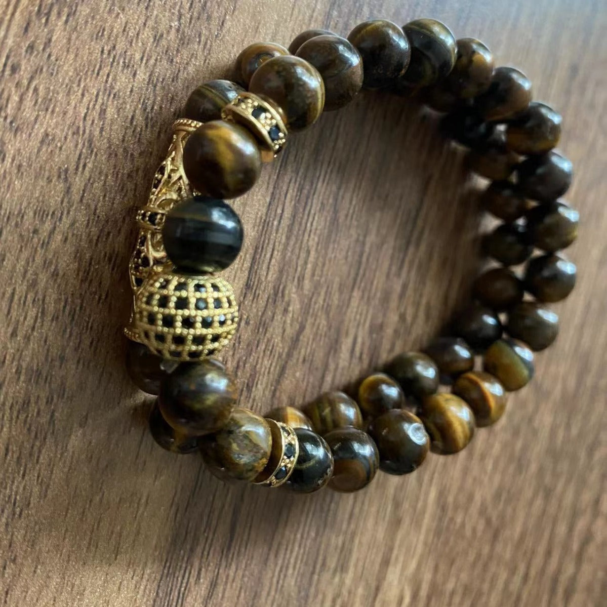 Micro-Inlaid Copper Natural Tiger-Eye Bracelet