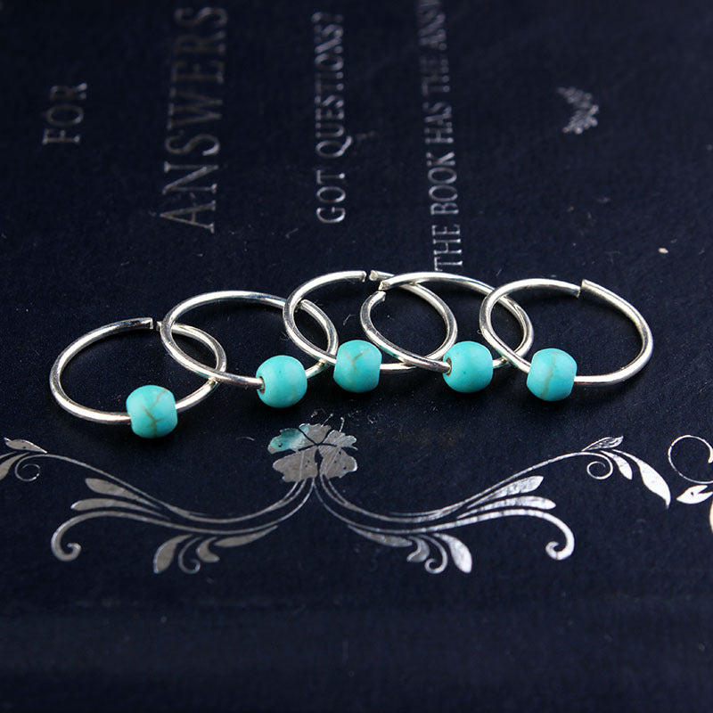Natural Turquoise Hollow Bead Fashion Single Circle Hand-Woven Bracelet