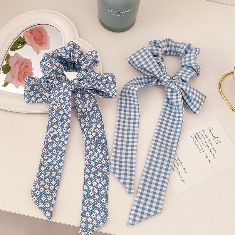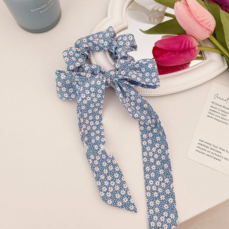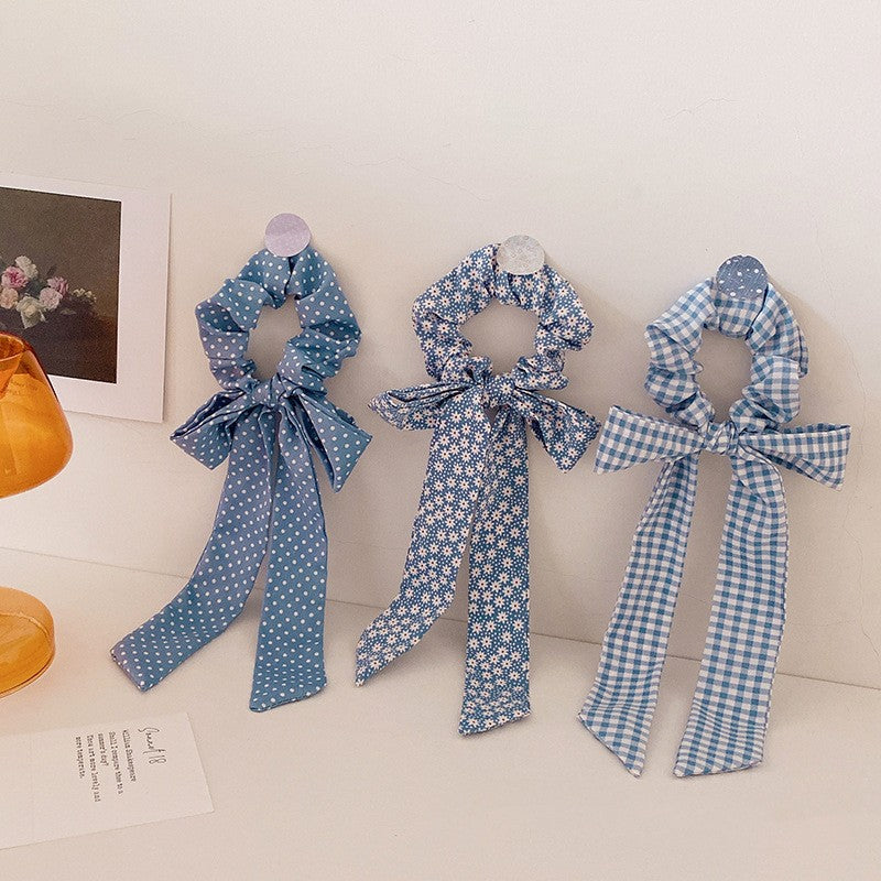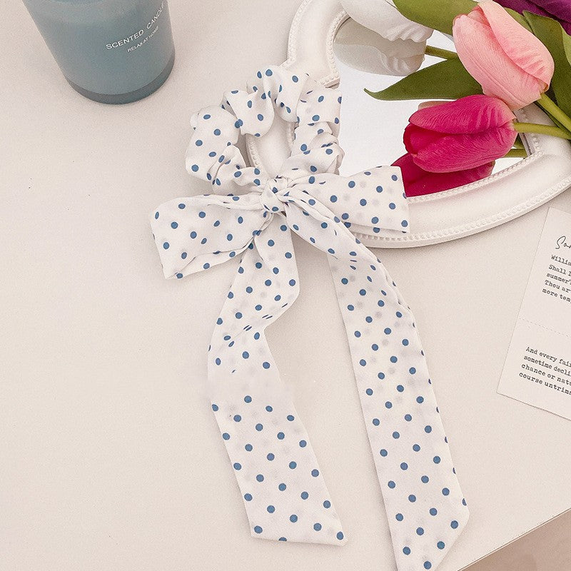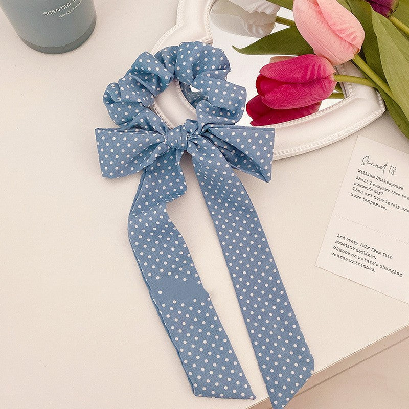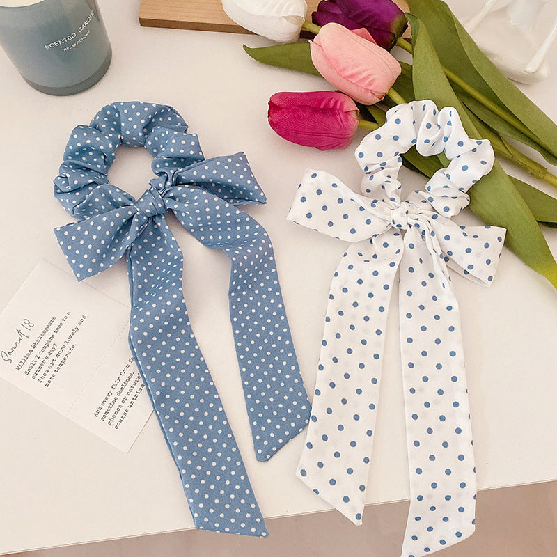 Polka Dot Floral Bow Hair Tie Girl Large Bowel Scrunchie Hair Rope