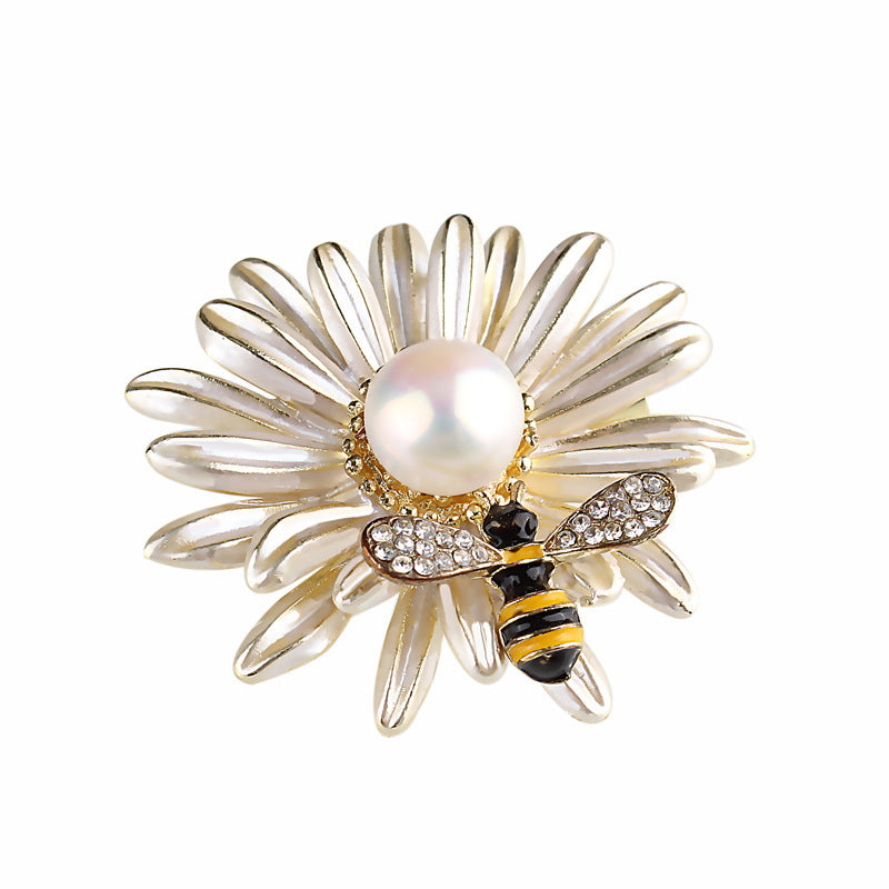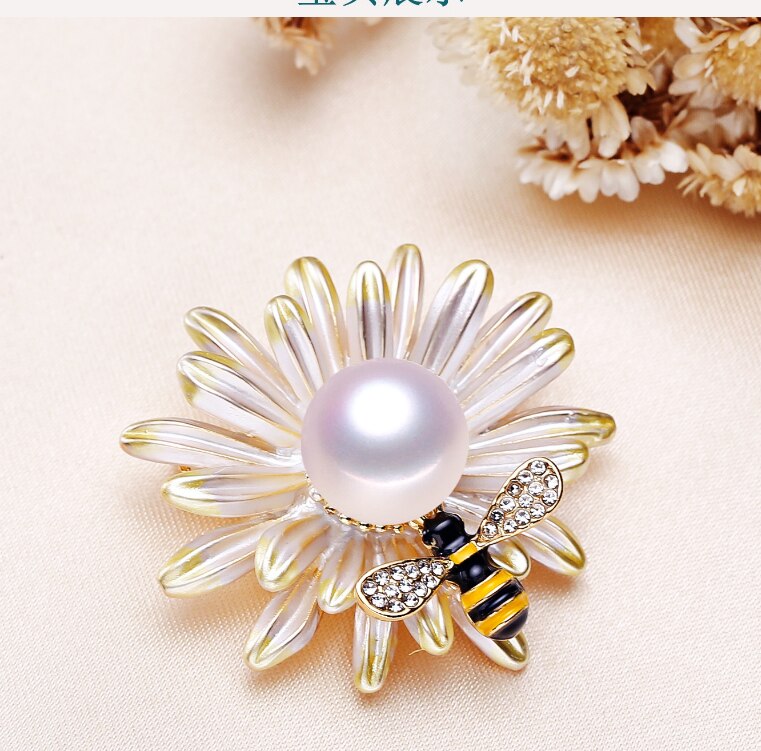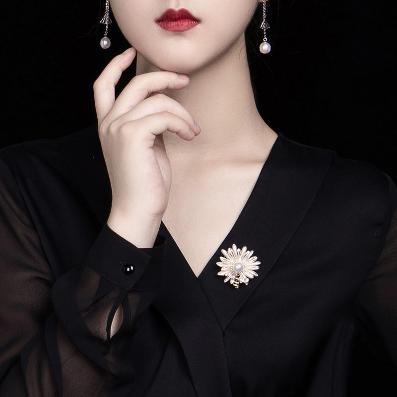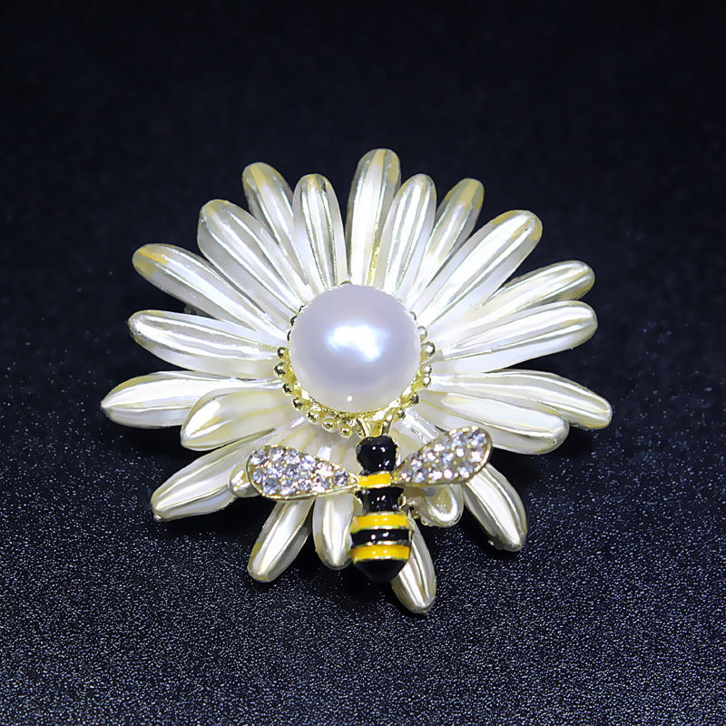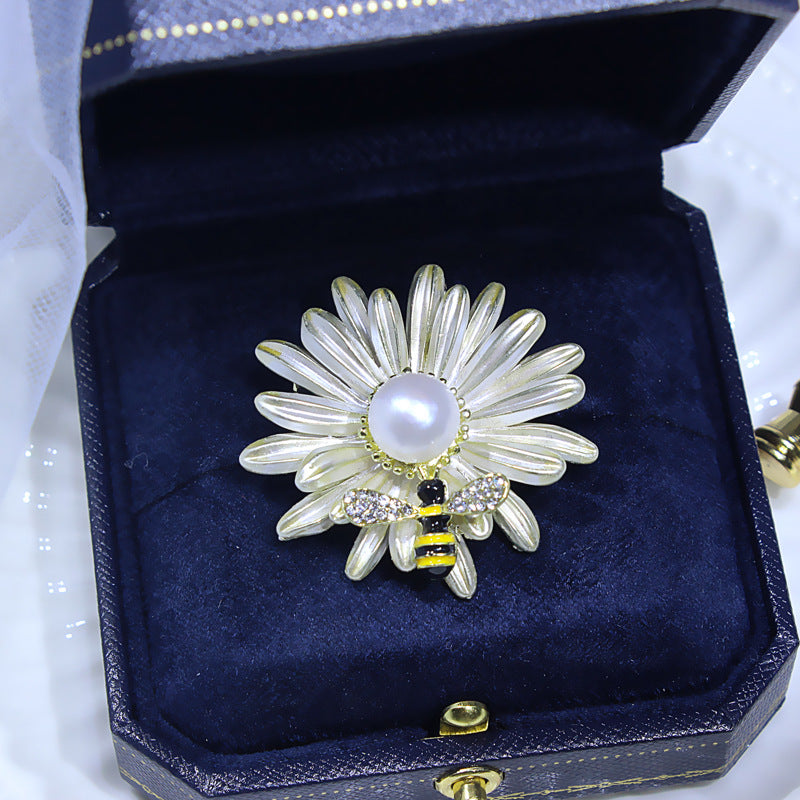 Real Pearl Corsage Fashion Wild Flower Bee Brooch Exquisite Dress Corset