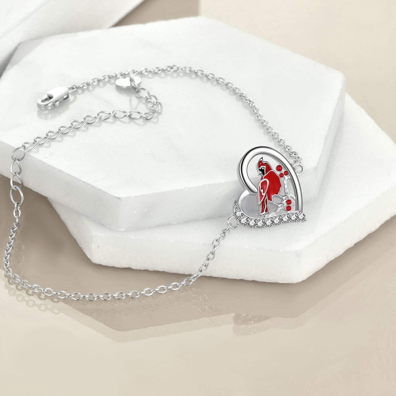 Red Cardinal Heart Shaped Zircon Sterling Silver Anklet Jewelry Gift For Women