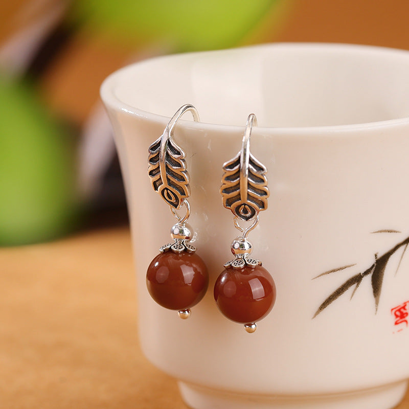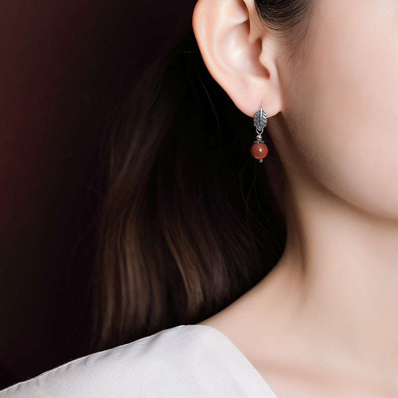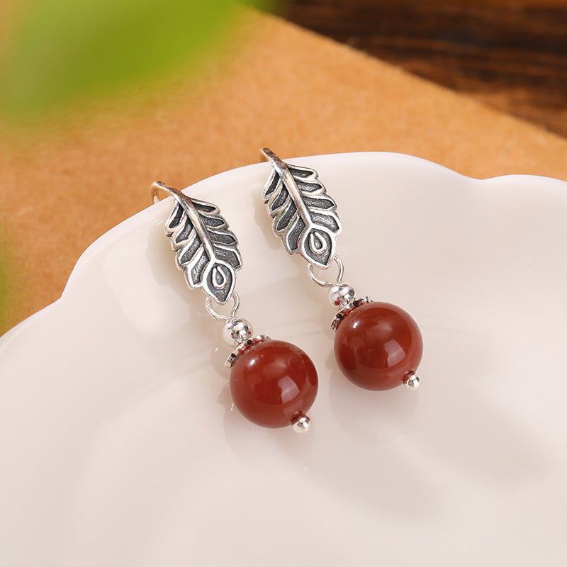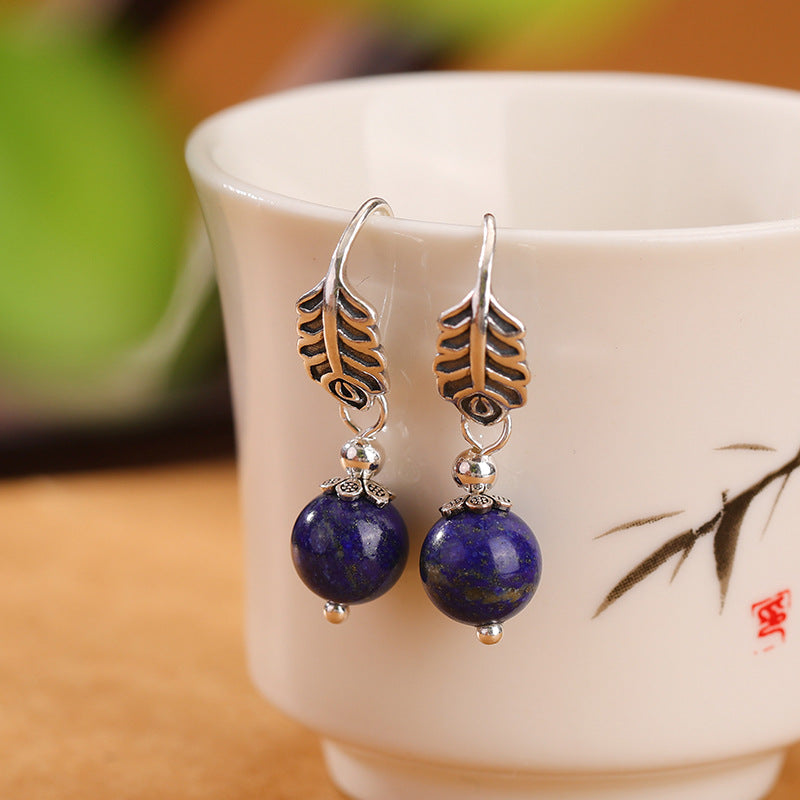 S925 Sterling Silver South Red Lapis Lazuli Vintage Distressed Leaves Ear Hook