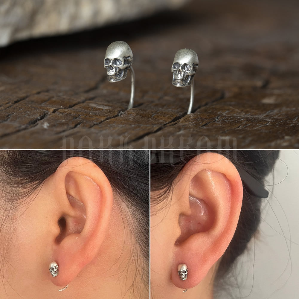 S925 Sterling Silver Vintage Carved Skull Adjustable Ring