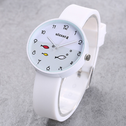 Children Watch For Girls Color Silicone Strap Fashion Quartz Wristwatch Fish Dial Cartoon Kids Clock